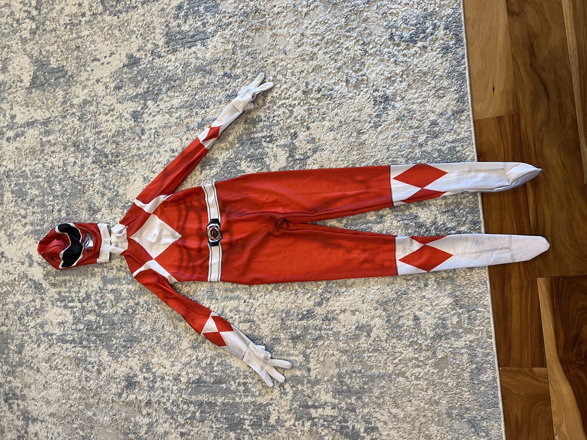 This is a NEW, never used, Red Power Ranger costume. It’s a kids Large, full body suit with a zip up in the back. The mask is a full face/head covering with a zip up in the back. We purchased this for $65 and am asking $40. Cash only please.