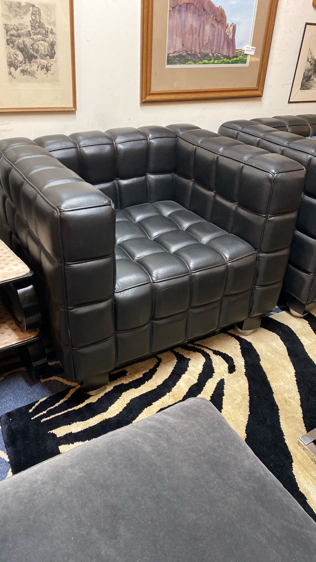 Pair Mid Century Leather Cube Chairs