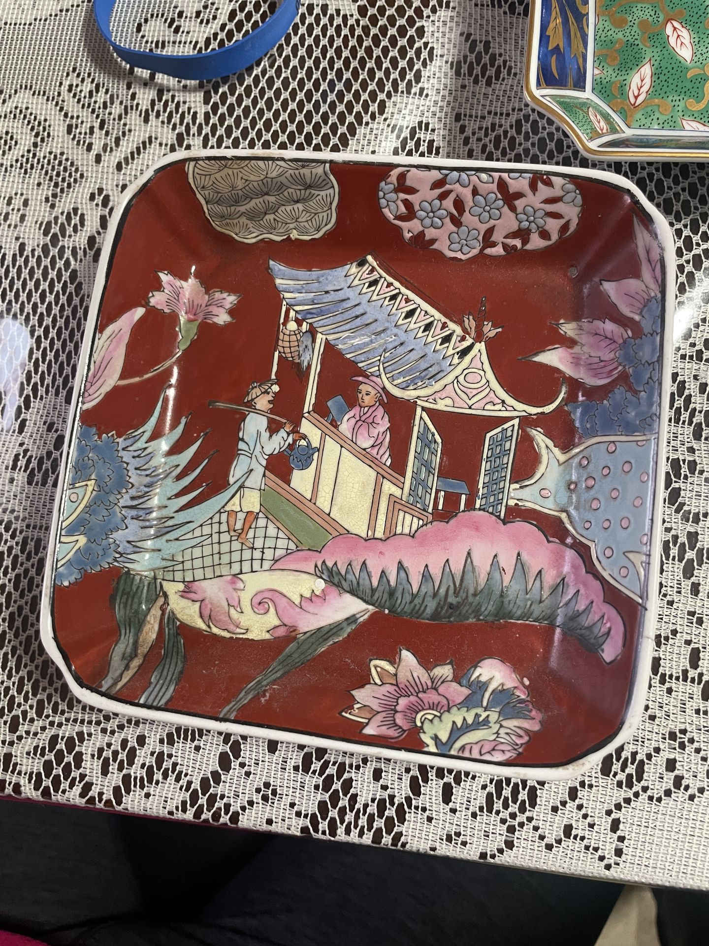 vintage Chinese export or Chinoiserie trinket tray or pin dish