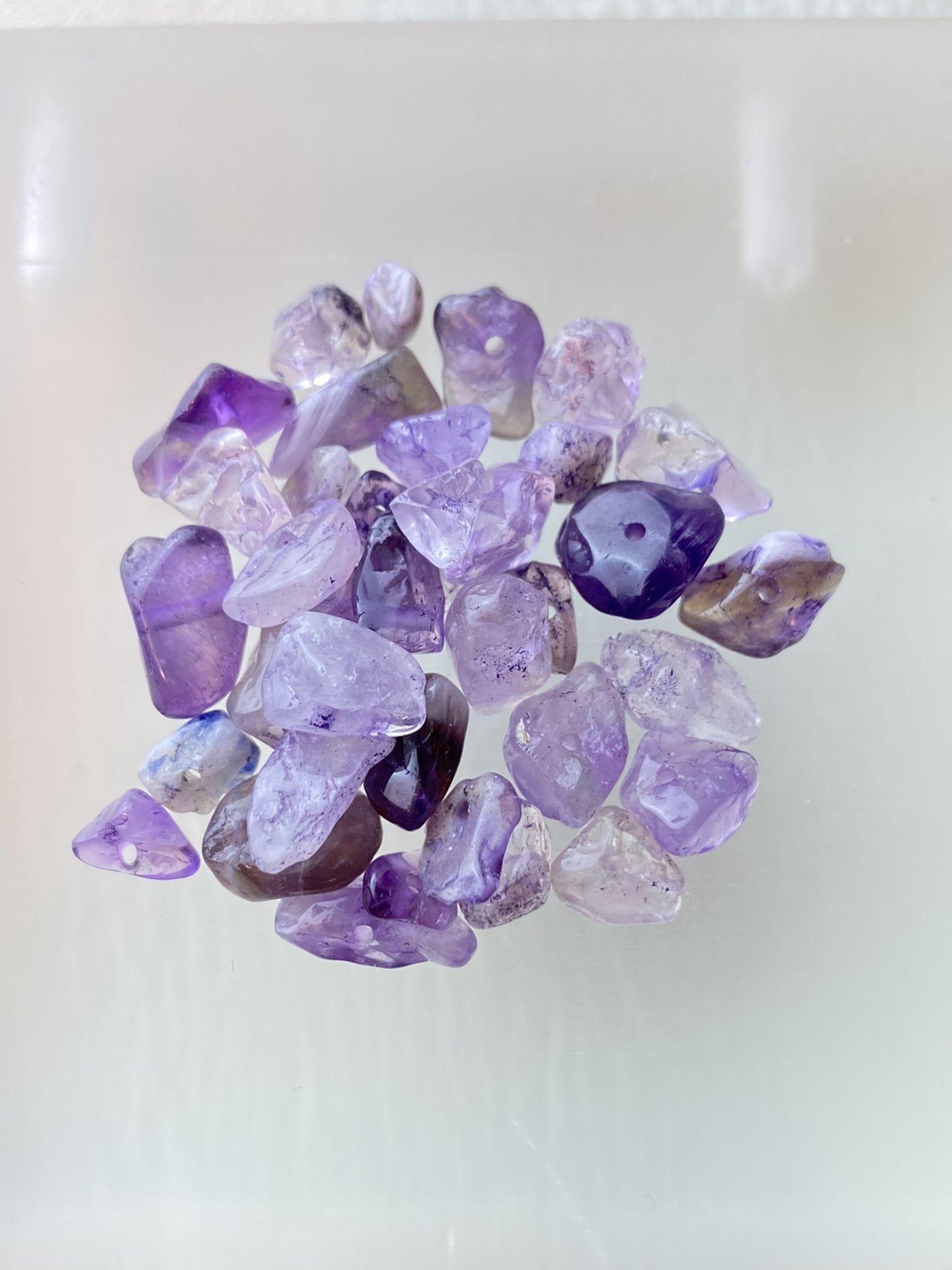Natural earth mined amethyst gemstone beads with beautiful Violet, grape, and deep purple shades. These gems are perfect for jewelry making and crafts. Also plays in a small bowl or sprinkle throughout your home for positive energy in your space. 51.45 Carats!
