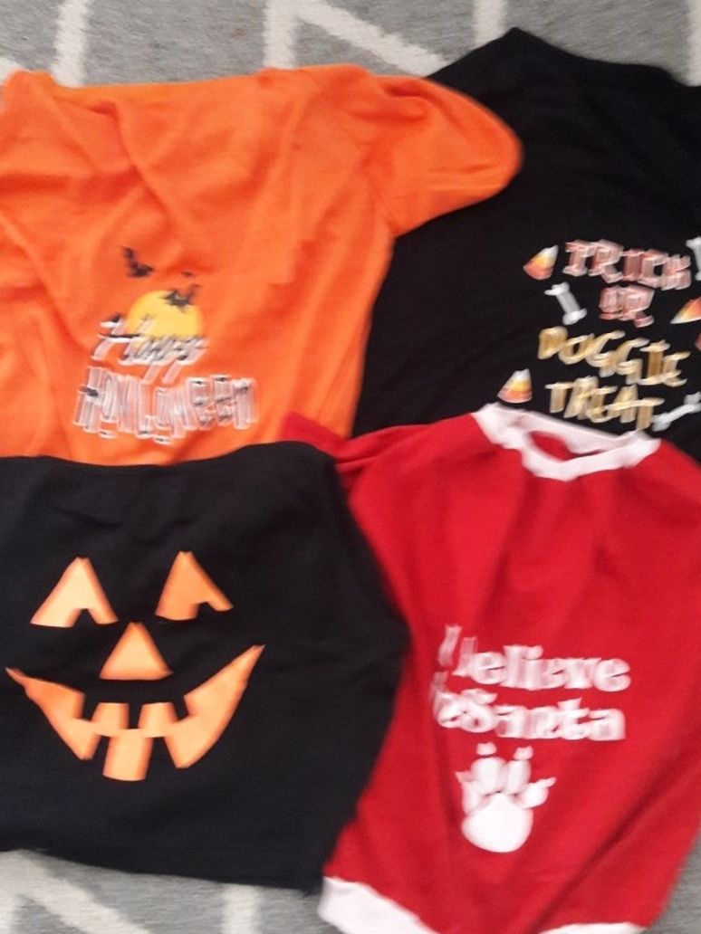 4 dog holiday T-shirts. Fits Husky, Shepard. 4 shirts for $40