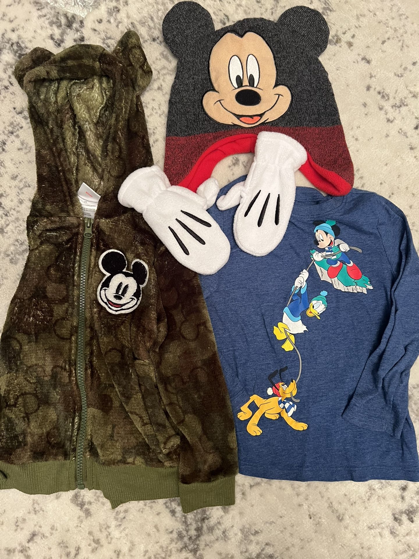 Disney Toddler Mickey Mouse Clothes Lot - Hoodie, Beanie, Gloves And Shirt Size 3T
