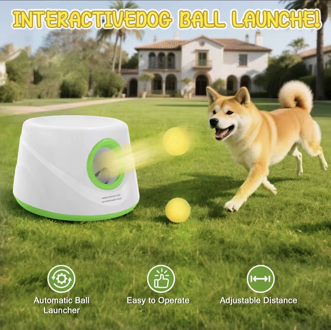 Automatic Ball Launcher for Dogs with 5 ETPU Tennis Balls and 3 Distance Settings (19/32/45FT) , Indoor/Outdoor Dog Toy
