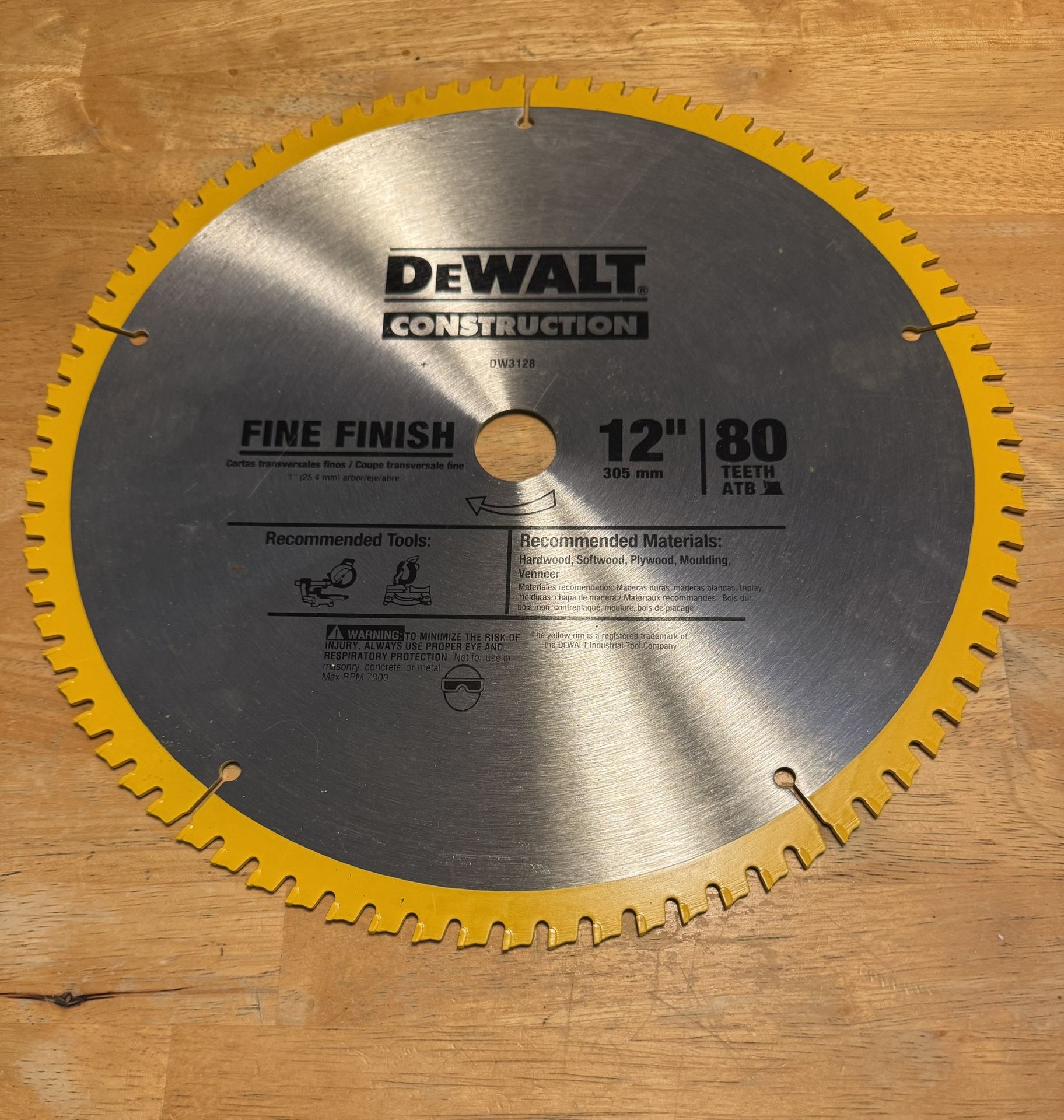 • 12” DeWalt Saw Blades (2) • (1) DeWalt fine finish 80 teeth (NEW) • (1) DeWalt fine finish 60 teeth (lightly used)