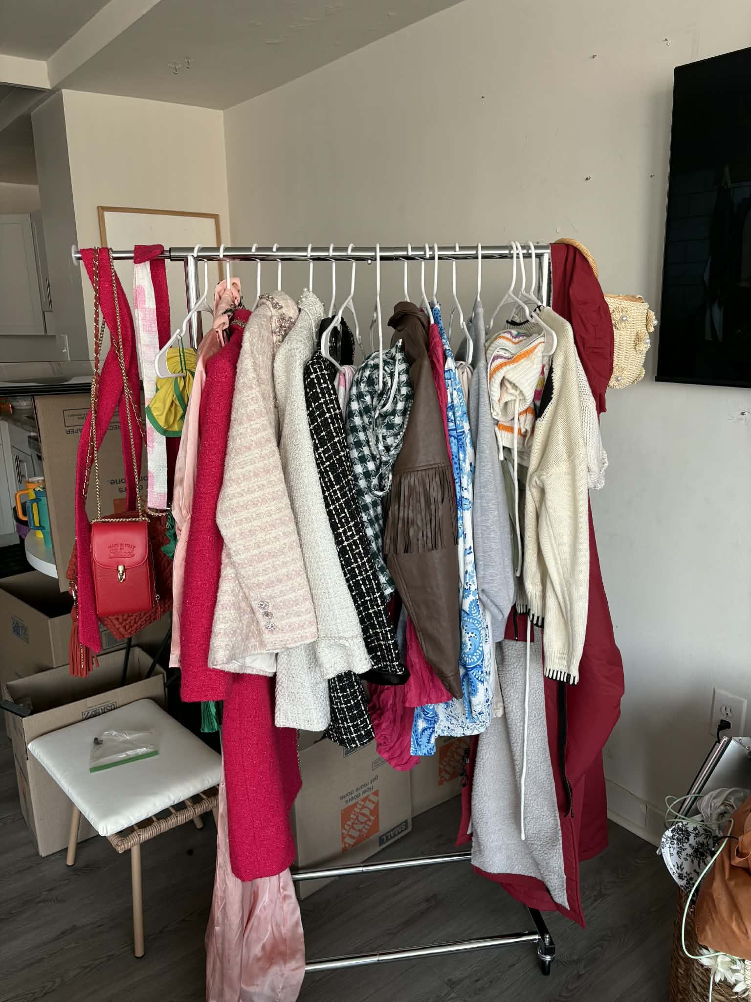 Small and mediums Pants Shorts Jumpsuits Shirts Jackets Sweatshirts Pajamas Tweed blazers ($80 each) Purple sparkly luxury dress ($100) Or fill a bag for $100!