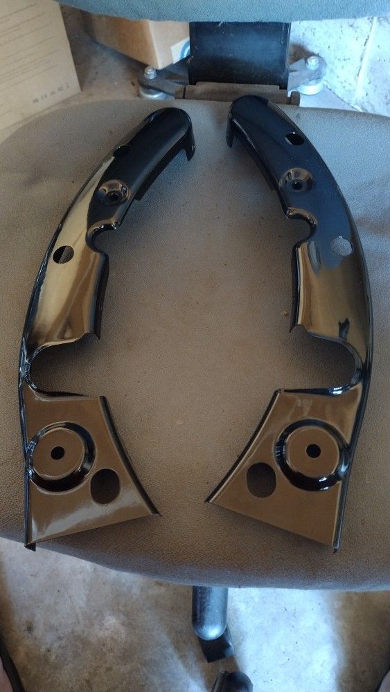 Harley Davidson rear fender strut covers. New unused. For a 09-13 road king, street glide, ultra classic. Black. Has a small scratch but it's not visible with bags or if you have quick release brackets.