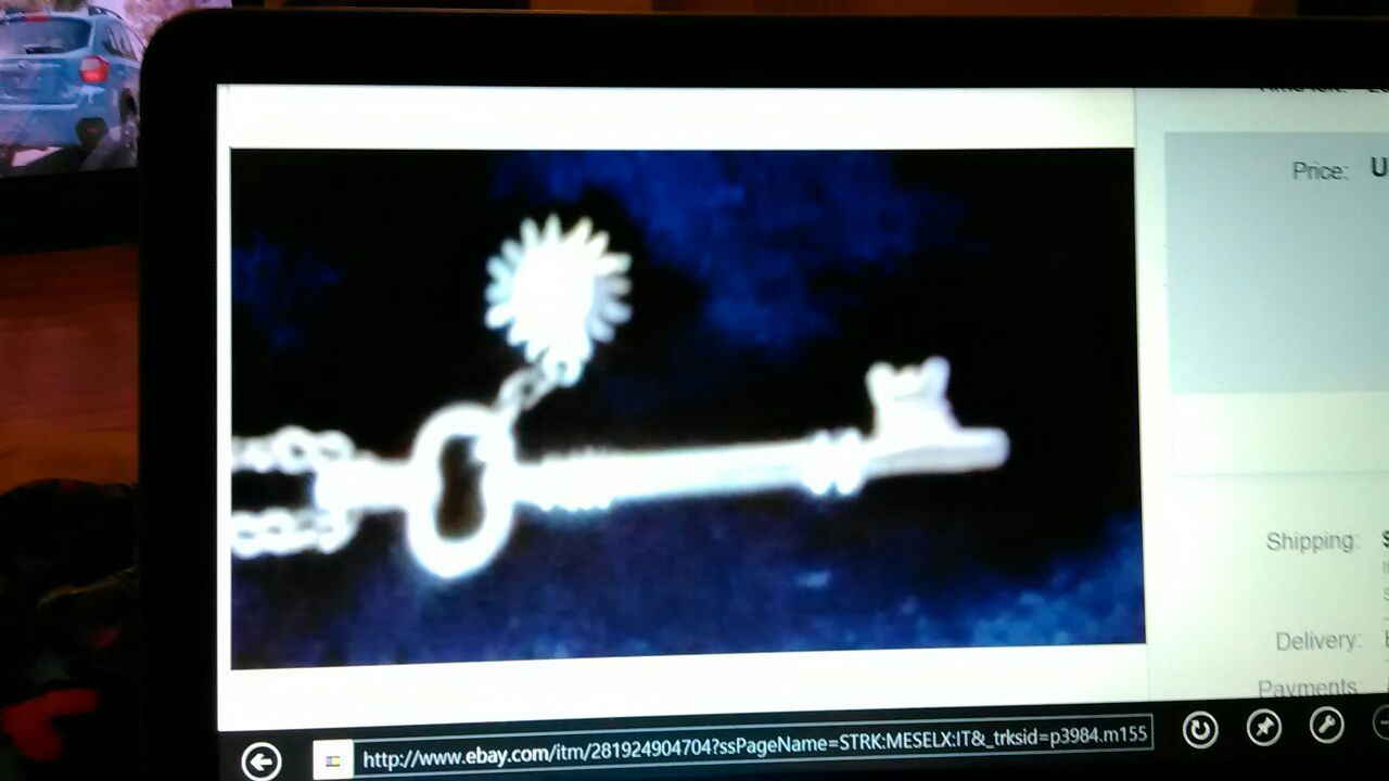Avon vintage signed key pendant necklace on a 30 inch chain, pre-owned, well taken care of.