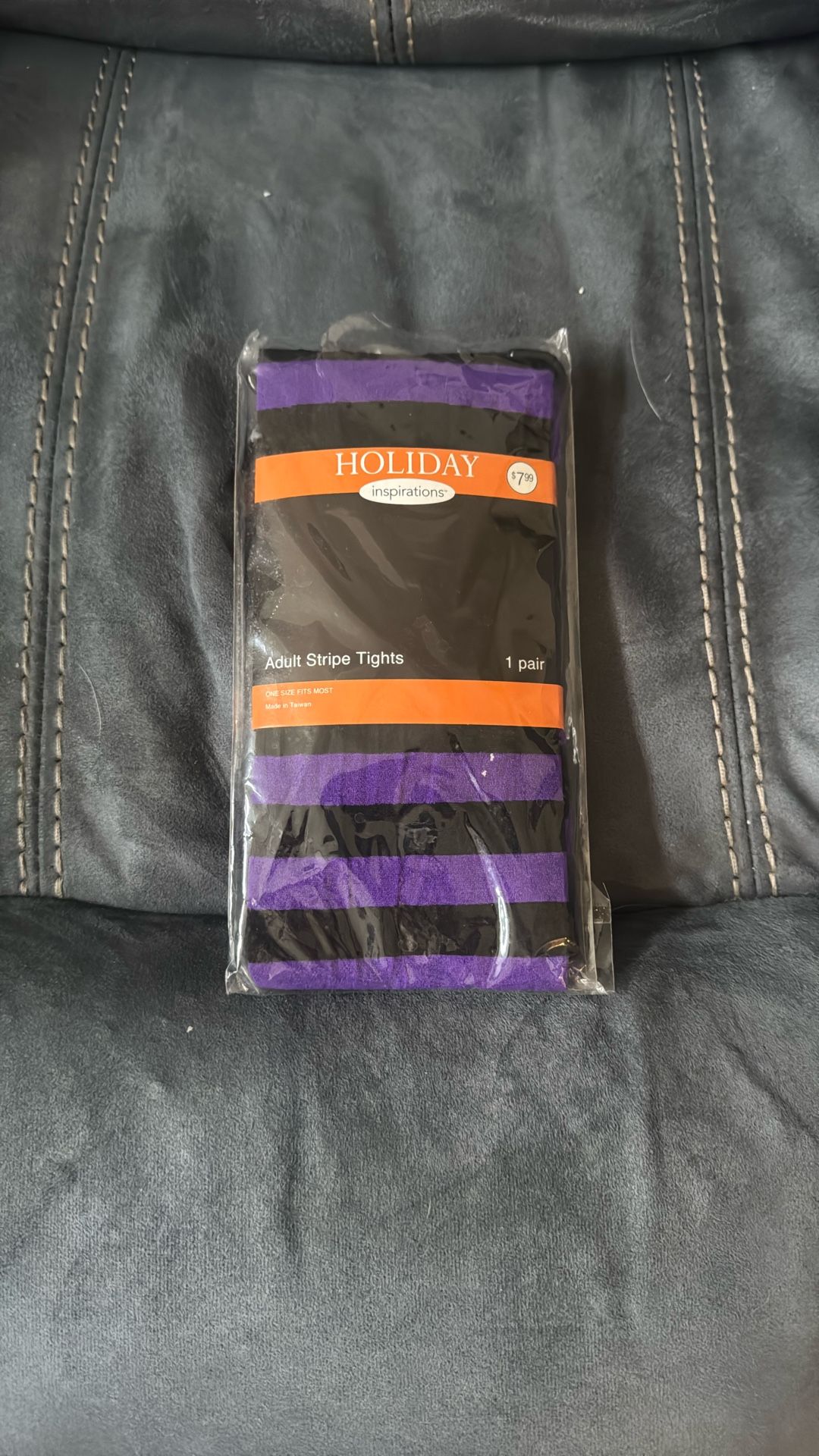 New Ladies Adult Purple Black Stripe Tights One Size Fits Most Halloween Costume