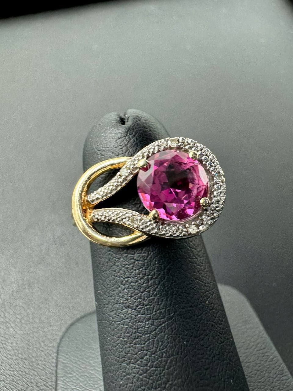 This gorgeous ring made of 10k solid yellow and white gold with diamonds and big pink stone in the middle. Total weight: 3.9 grams. Size: 5. Very beautiful and absolutely gorgeous. The unique design of this ring makes it very irresistible. The best choice! Perfect gift! β€οΈππ We buy Rolex and Audemars, patek . Do layaway in vipawn Boca Raton π₯ππΈ
