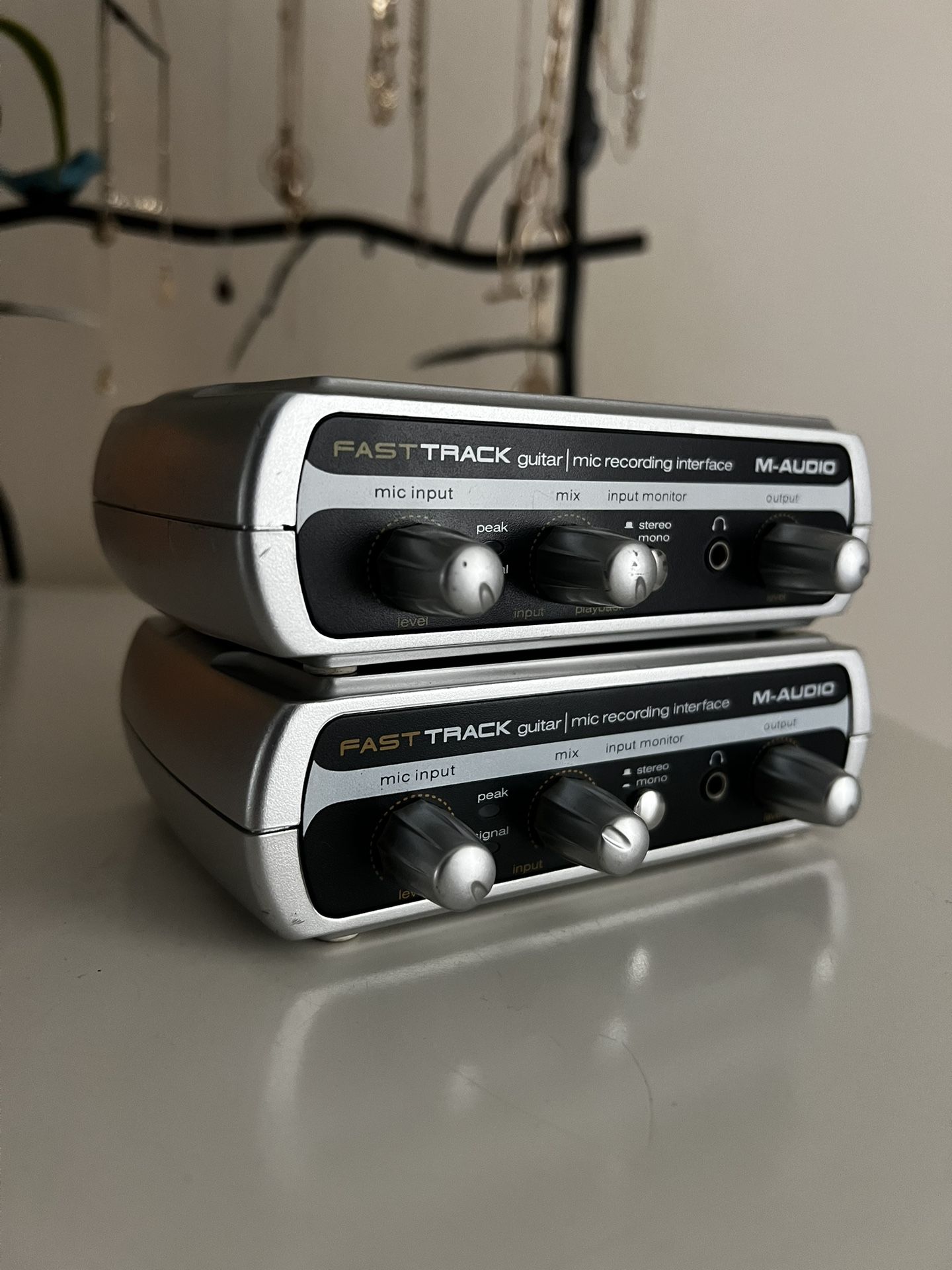 These are my two working M Audio FastTracks, they are in good working condition. I have a midi cable for you to test them with but It’s my only one so I cannot sell it with the audio interfaces unfortunately. I’m selling these together for $40 or $20 each.
