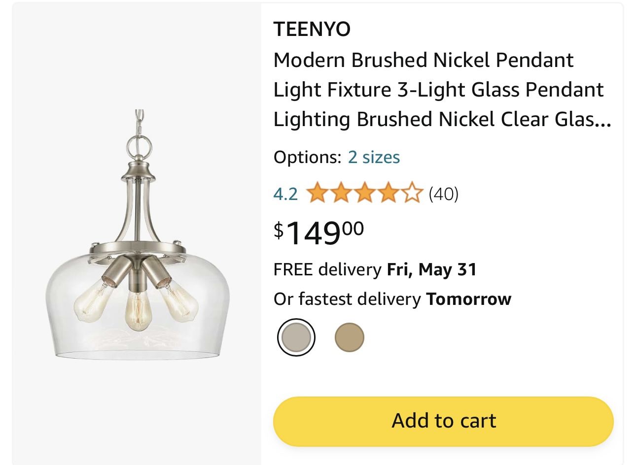 TEENYO Modern Brushed Nickel Pendant Light 3-Light Clear Glass Pendant Lighting Adjustable Height Pendant Island Light Fixtures