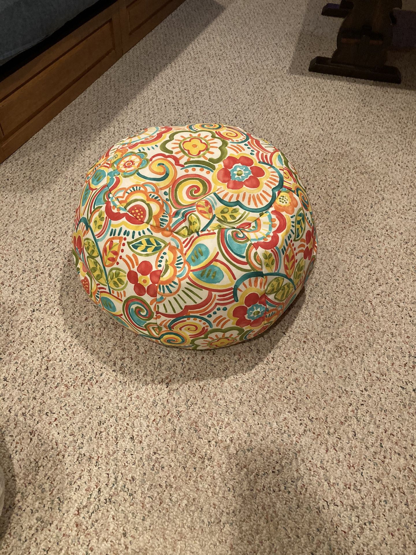 Brand new taken out of box and never used. Deck chair. Vibrant colors. Great for that extra chair needed with company. Not good for someone tall tho. More for anyone 5’9 and under.
