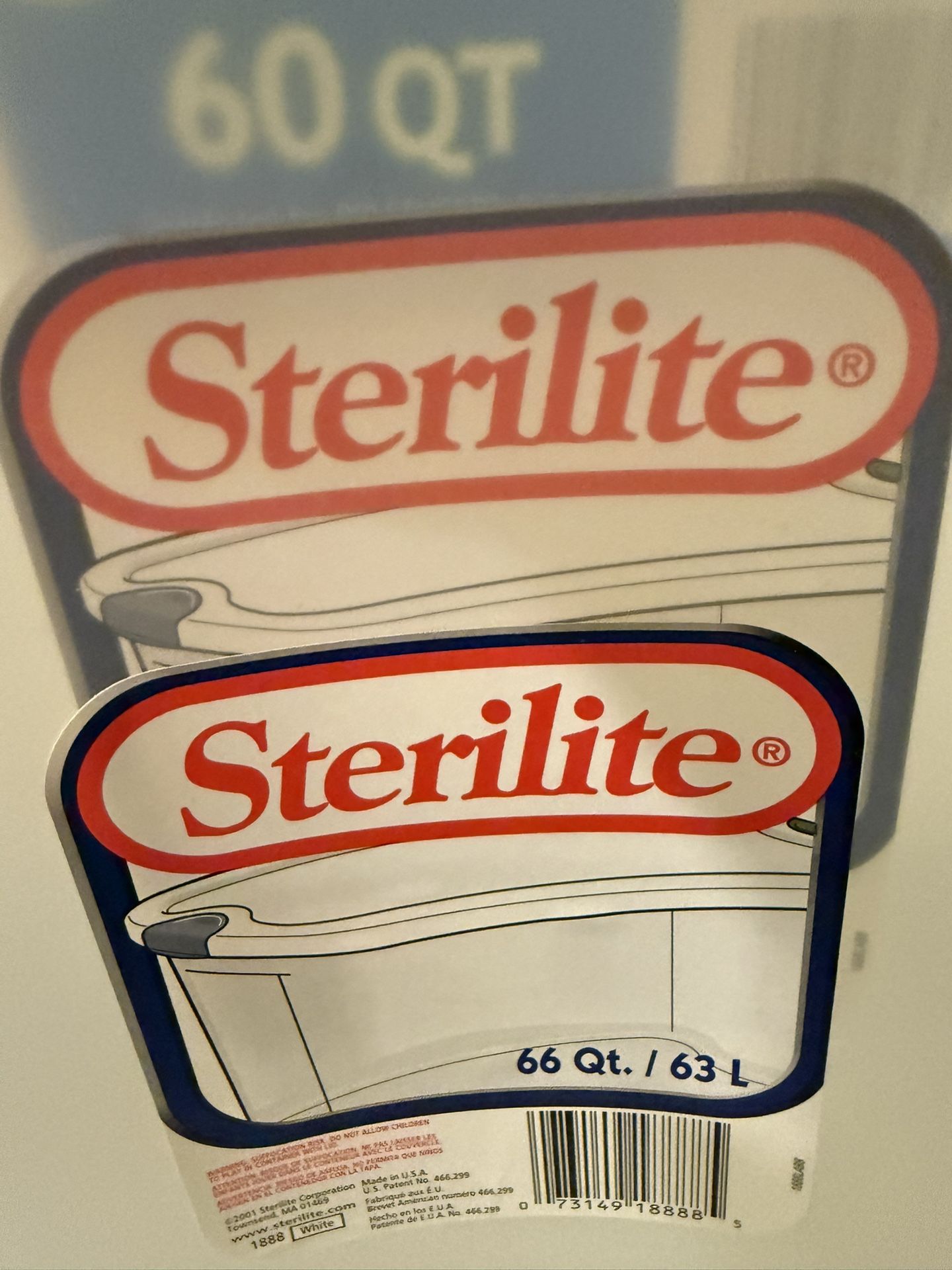 Two Sterlite plastic storage bins. 66 qt. $10 for both or $5 individually. More sizes available.