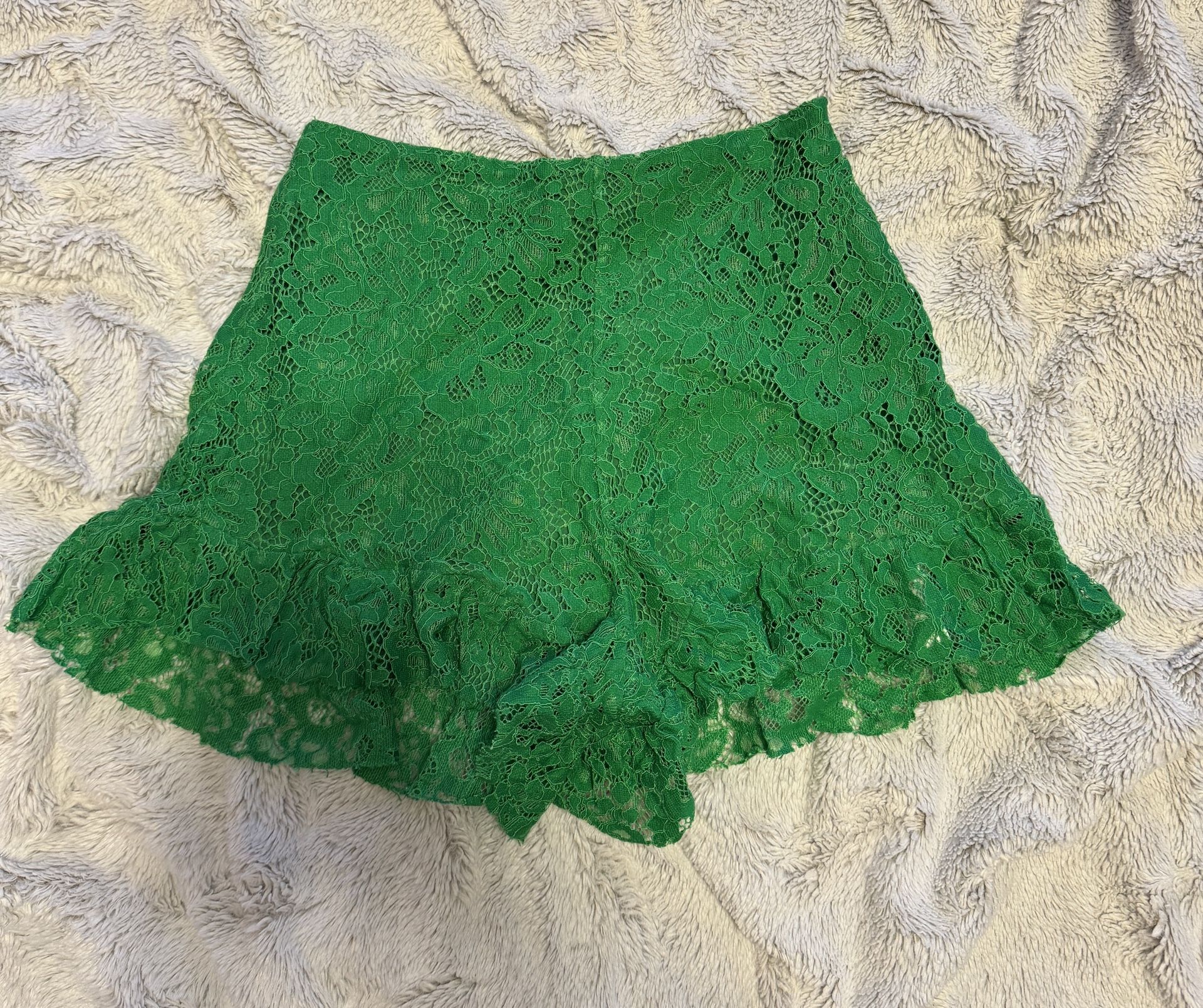 Womens Zara Green floral Lace crochet ruffle hem short Shorts hot pants Size S