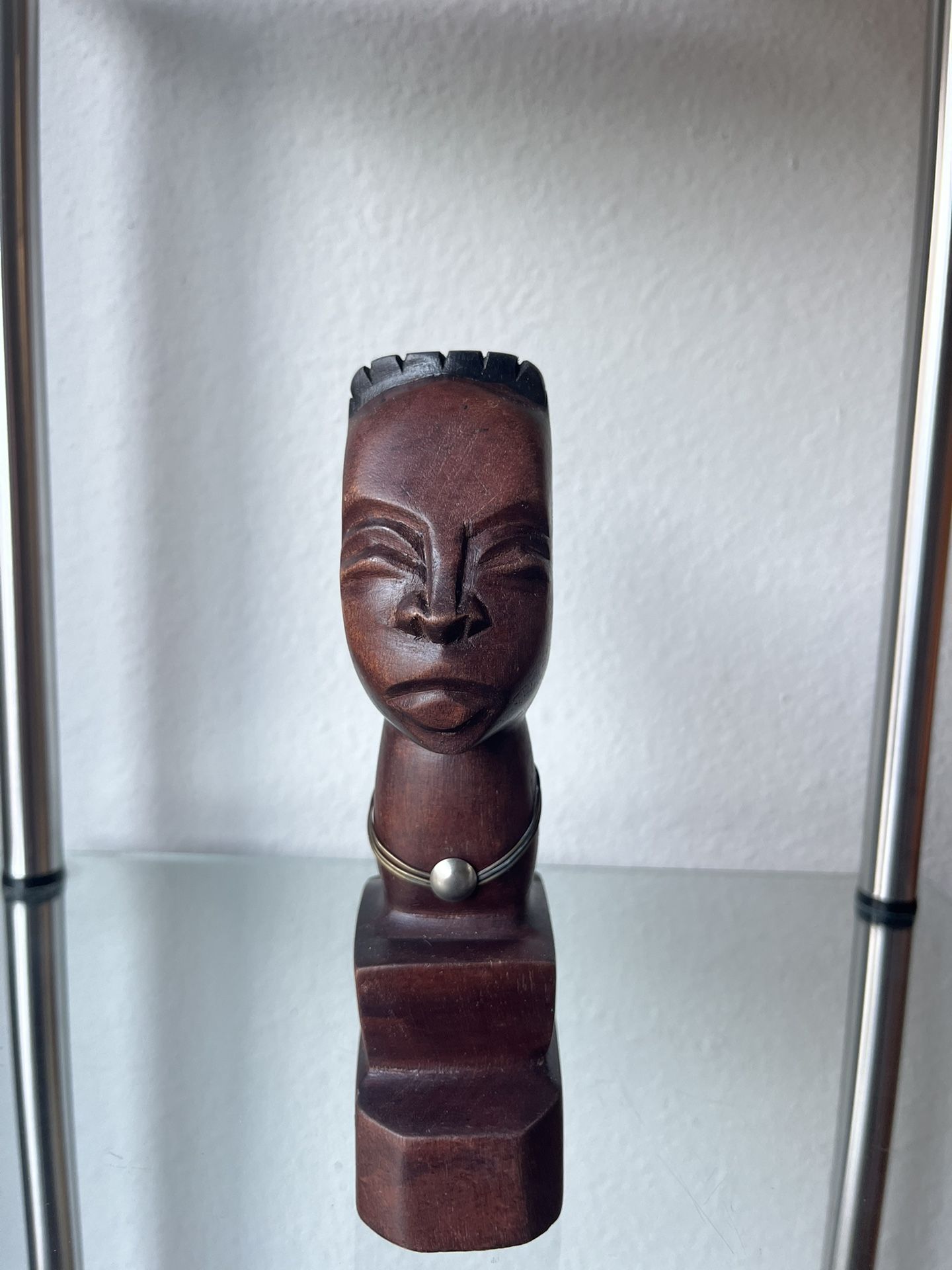 🤎 Miniature African Carved Wooden Bust with Metal Necklace 🌍