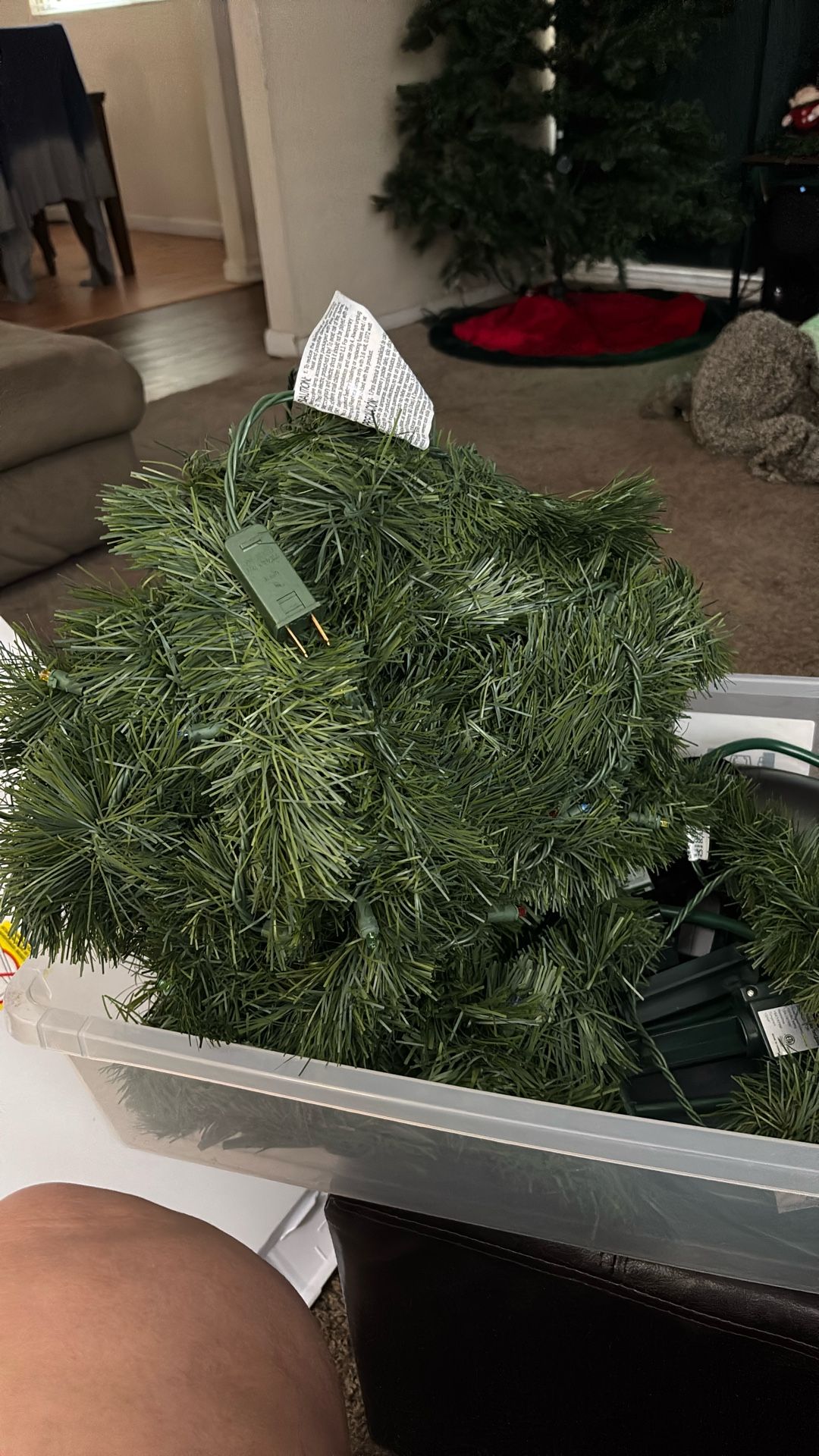 I have garland with lights, 2 light show for the front of house for Xmas colors and 2 extension cords with 3 slots each for plugs . All new from last year. I used the stuff 1 time. Price is non negotiable . All comes in the bin. Buy all or none.