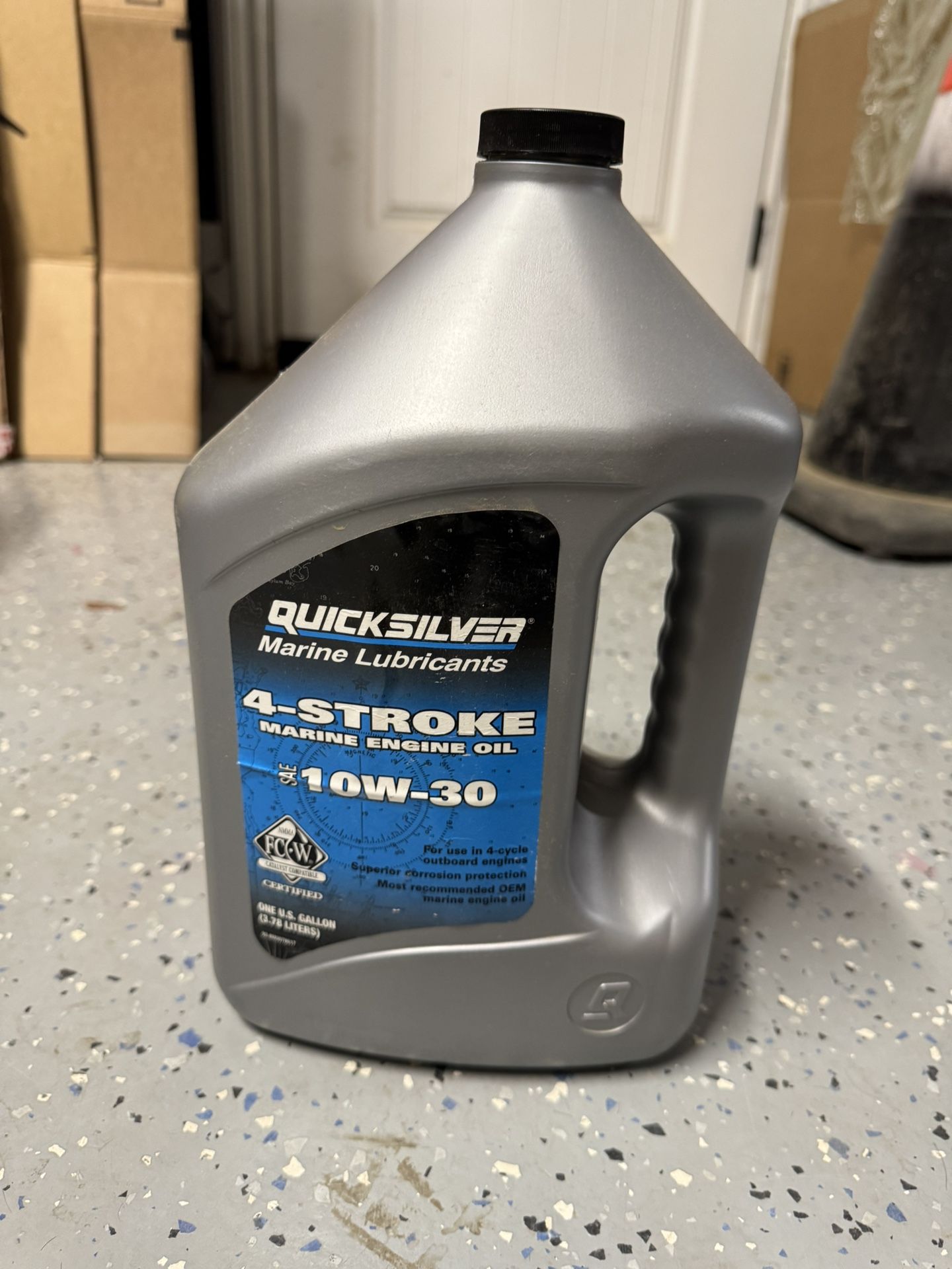 $25 firm! Brand new Description Clean oil is essential in reducing friction and preventing damage to internal components, providing many years of engine life. Engineered for sterndrive and outboard applications, this 4-stroke 10W-30 marine oil has been extensively tested to ensure impressive protection against corrosion and wear. Features premium-grade synthetic and mineral-based stocks, exceeding all marine industry 4-stroke oil requirements including FC-W and FC-W Catalyst Compatible.The Quicksilver brand is the leader in delivering uncompromising engine oils, parts and accessories to the marine industry for over 65 years. Quicksilver is the premier supplier of Mercury Marine Original Equipment replacement engine parts, oils, and accessories, but also works to serve all Original Equipment brands in the marine and powersports industries. It has earned a loyal following by providing the highest quality products that are tested through some of the most rigorous environments and testing procedures. No aftermarket company comes close to the level of research and design as Quicksilver; buying Quicksilver is buying performance, protection and peace of mind. Features & details Designed for use with all 4-stroke marine outboard motors and inboard and sterndrive engines Formulated to protect marine engines against corrosion and excessive wear Offers outstanding shear strength, viscosity retention and corrosion resistance 10W-30 viscosity Manufacturer part number 8M0078617