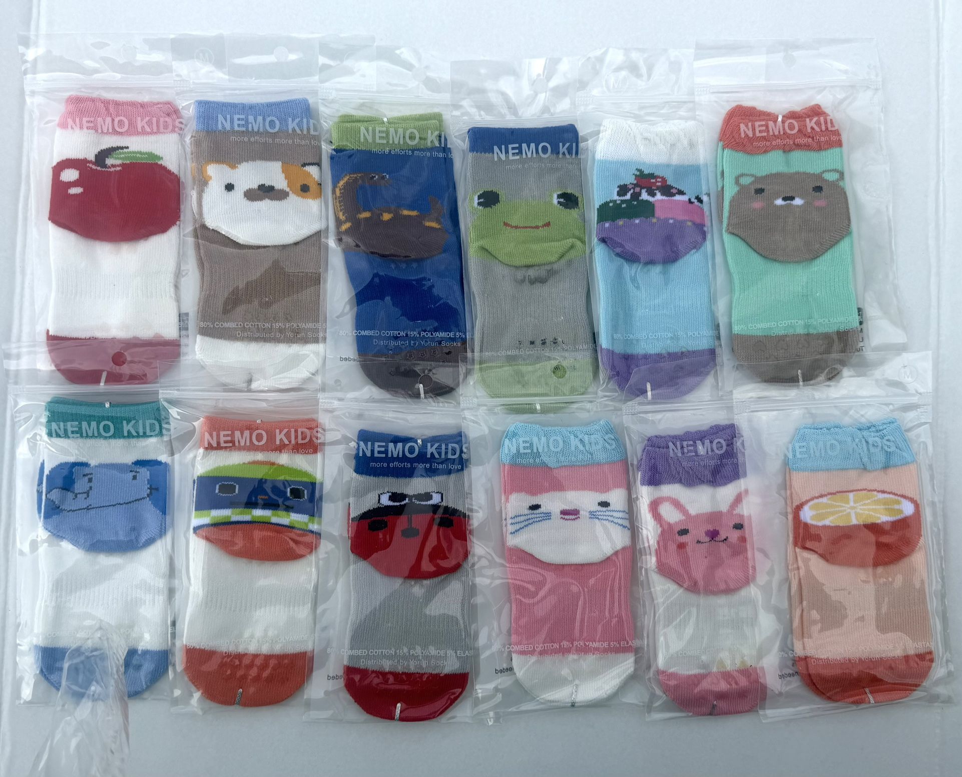 Anti-Slip Grip Soles Cartoon Baby Socks,12 Pairs per Pack (M 1-3 Years)