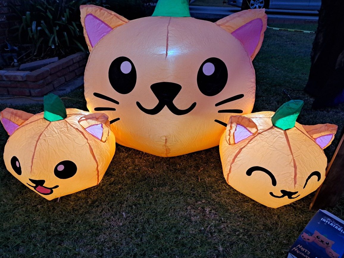 For sale is a 5 ft. Pumpkin cats inflatable It's in used condition, but it still works perfectly. See the photo I took today when I tested it.