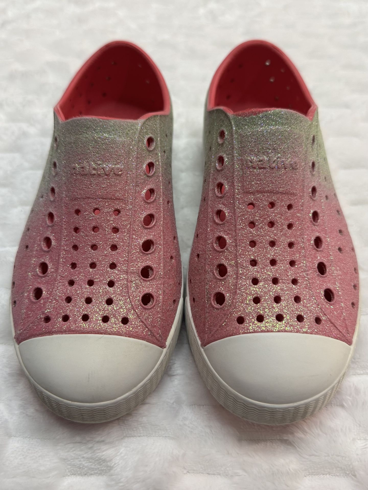 Pre owned - good condition, has minor signs of use Native Kids Pink Green Glitter Slip-On Casual Shoes C11 Review the pictures to see the conditions