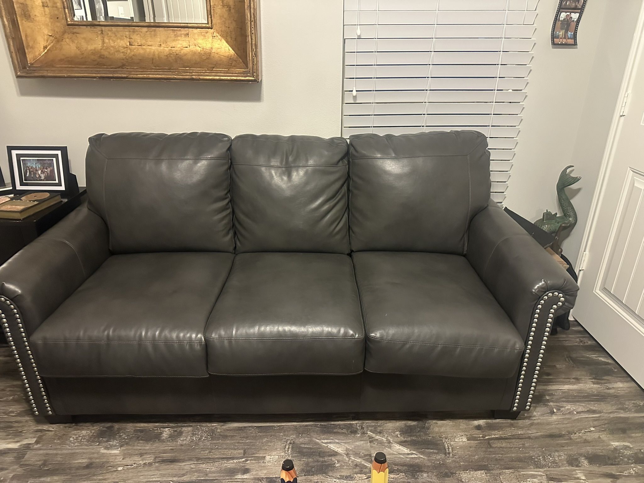 Sleeper leather couch just like new. Bed still has plastic on it.