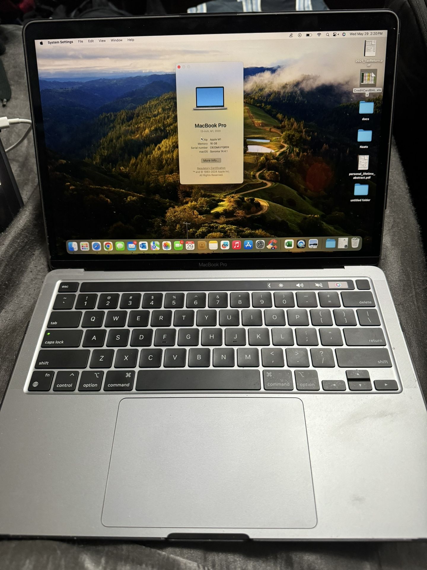 MacBook Pro 13 in (M1 chip) OS Sonoma 14.4.1 (newest) 16GB Ram 256 GB SSD COME WITH HARD CASE