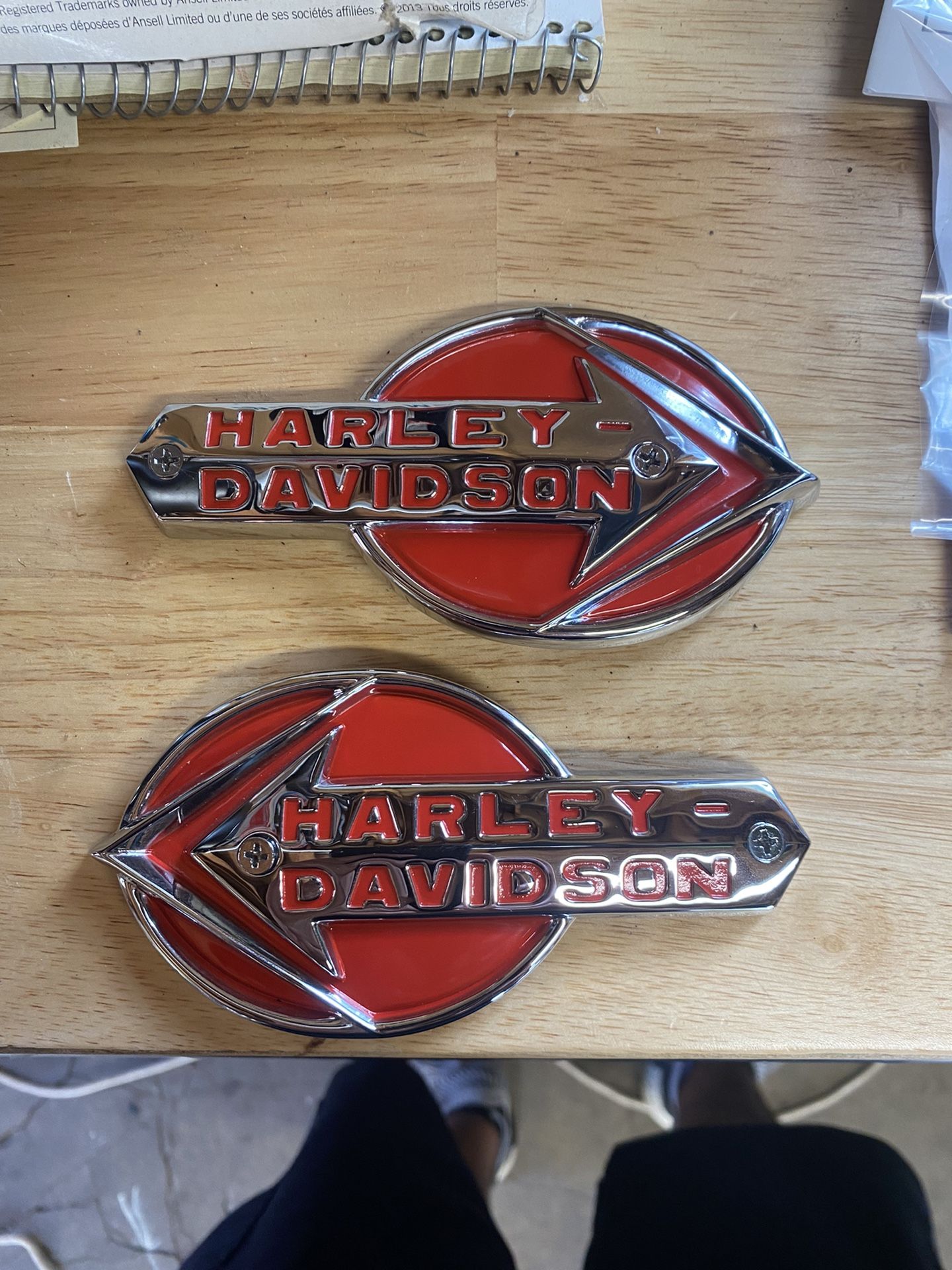 Old school Harley Davidson tank badges