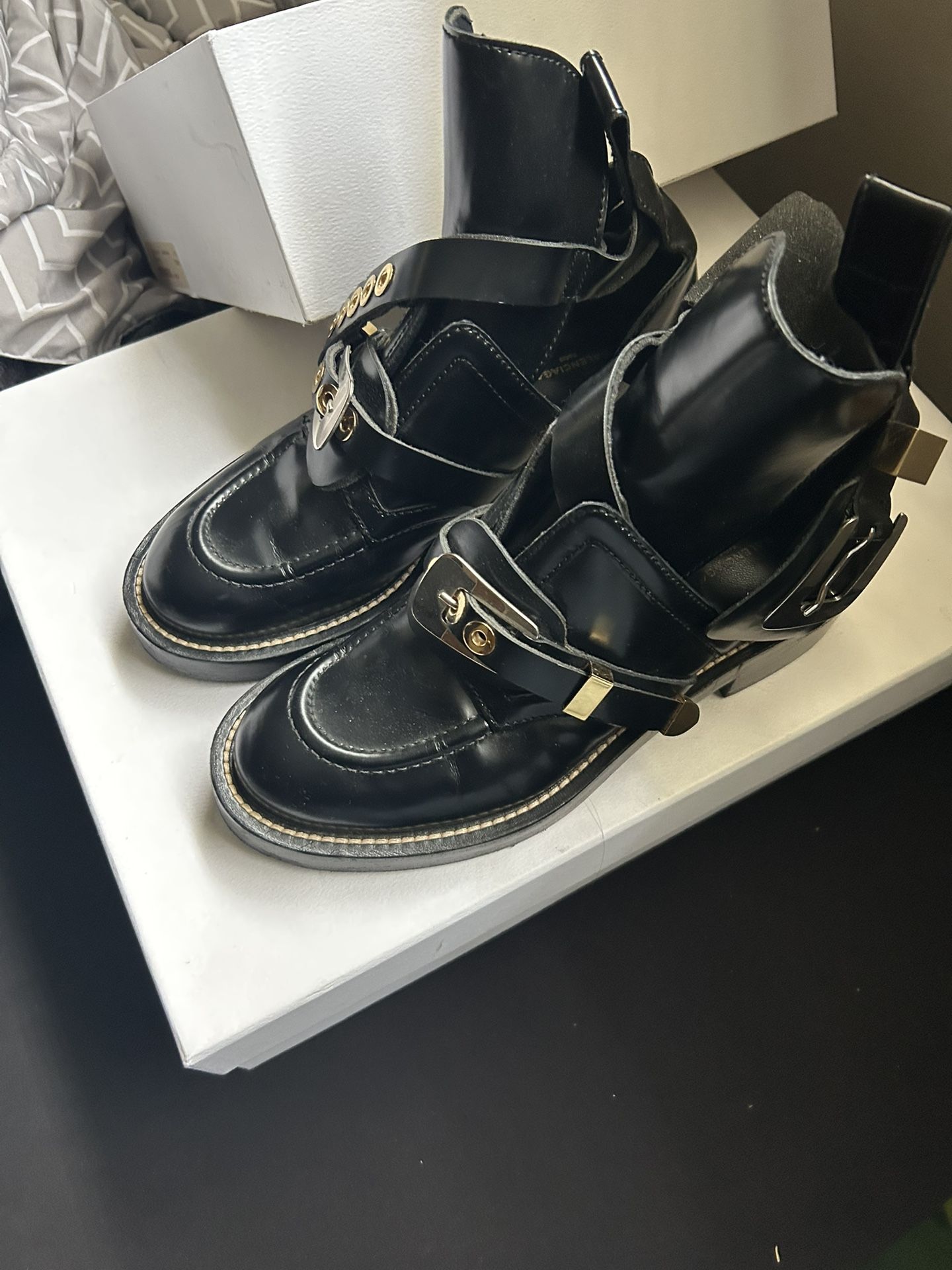 Used Balenciaga Leather Boots, Have Deep Wear On Bottom But Top Of The Shoe Is In Perfect Condition, No Deep Scratches, Tears, Rips, Loose Stitches. Size 38 OBO