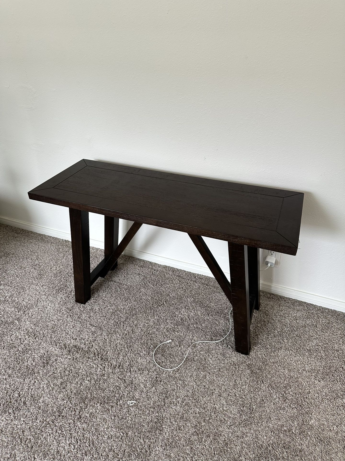 Dark brown wood. 40 inches long, 15 inches wide, 24 inches tall. $75