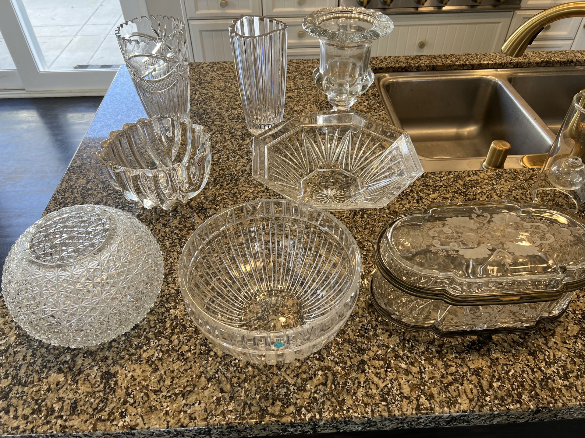 I have a beautiful assortment of vintage crystal bowls and vases available for sale. All items are priced at $17 each, with the exception of the Tiffany bowl & the carved glass box on brass stand those are $120 each. payment via Venmo or Zelle. Please let me know which piece you are interested in when you message me.