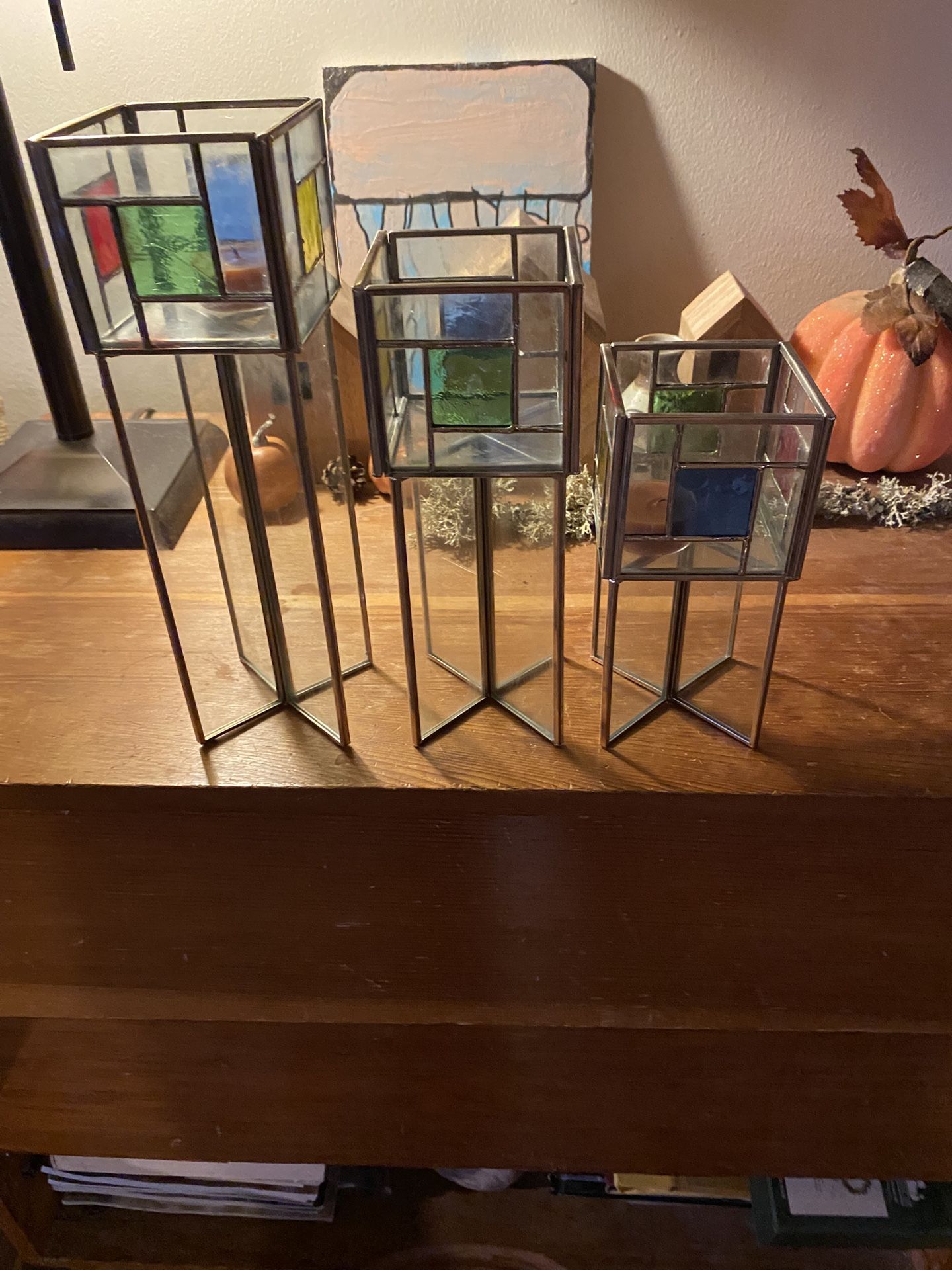 3 Stained Glass Candle Holder/Read Description And Look At The Pictures