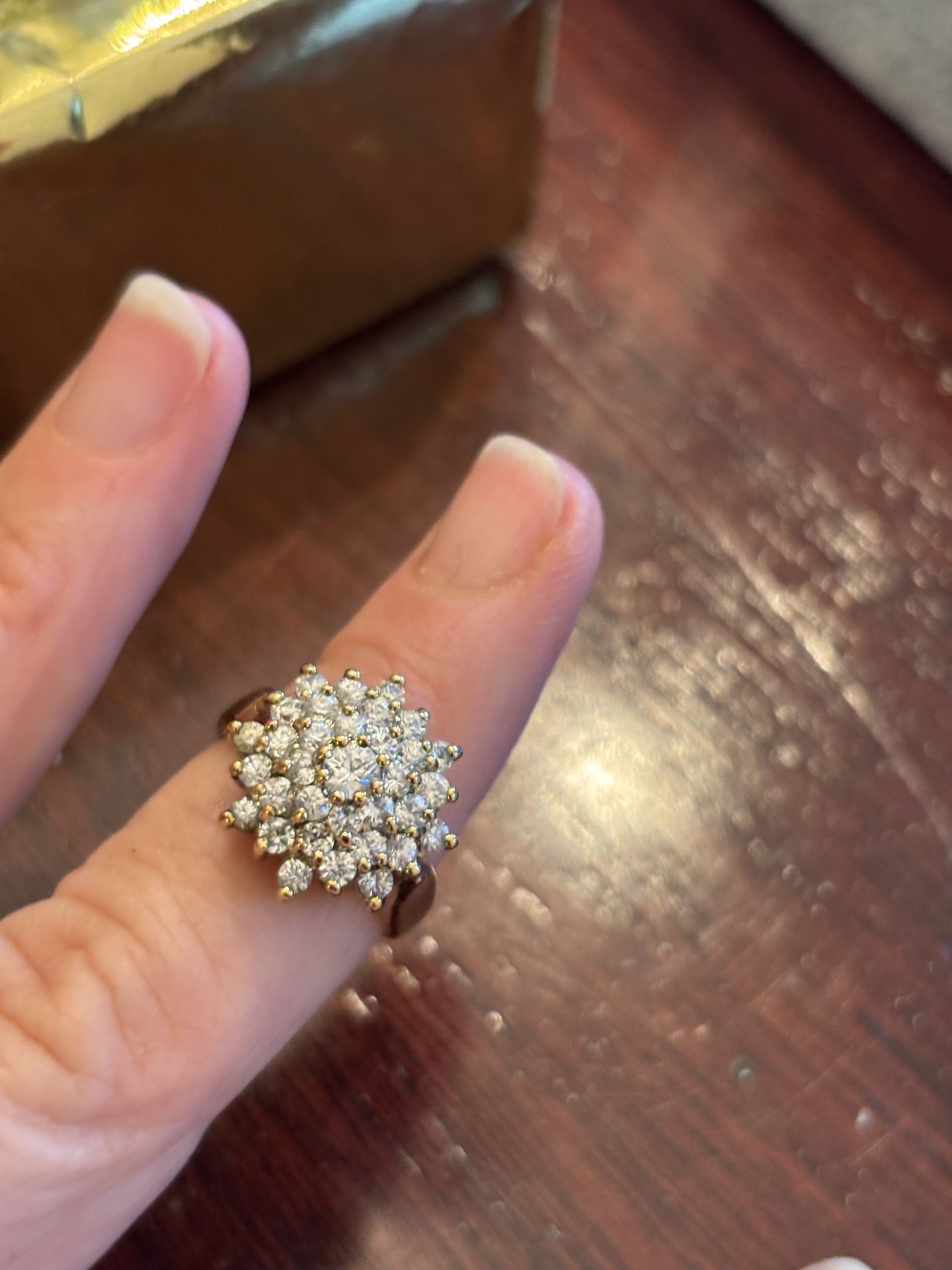 sterling silver sz 6 gold wash cluster cocktail ring white sapphires