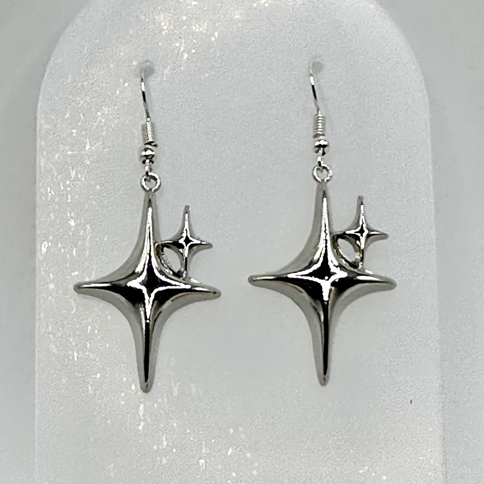 ✨ Pretty, large, silver tone mid century stars earrings ✨ Matching pendant also available - same size charm ✨ See photo with quarter for sizing reference and backside #retro #50s #60s #mcm