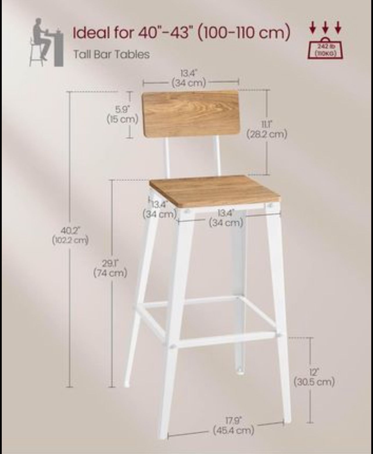 Set of 2 Bar Stools, Bar Height Stools, Tall Bar Stools with Back, Bar Chairs, Steel Frame, Industrial Style, Easy Assembly ,Brand New, Never Used. still in original packaging.