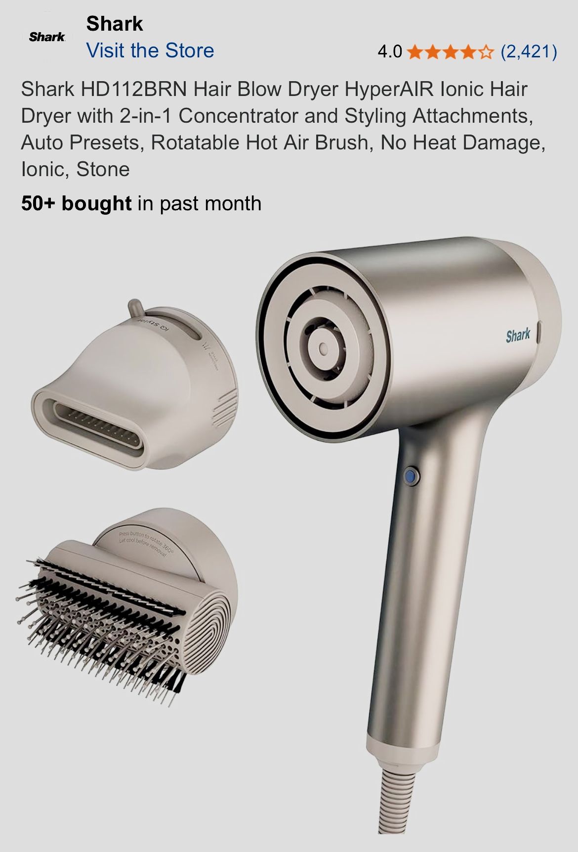 Shark HD112BRN Hair Blow Dryer HyperAIR Ionic Hair Dryer with 2-in-1 Concentrator and Styling Attachments, Auto Presets, Rotatable Hot Air Brush, No Heat Damage, Ionic, Stone Location Decatur& Meadows Ln LOOK MY OTHER OFFERS. If is posted it’s available. No holds. Smoke, pet and virus free home - Si está publicado, está disponible. Casa libre de humo, covid y mascotas. Payment methods accepted: Cash, Venmo, Cash App & Zelle. Se habla Español.
