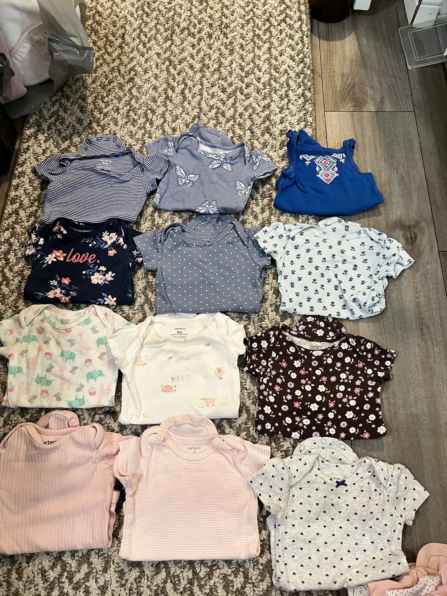 First picture 3M the rest are 3-6M (35 shirts for $20)