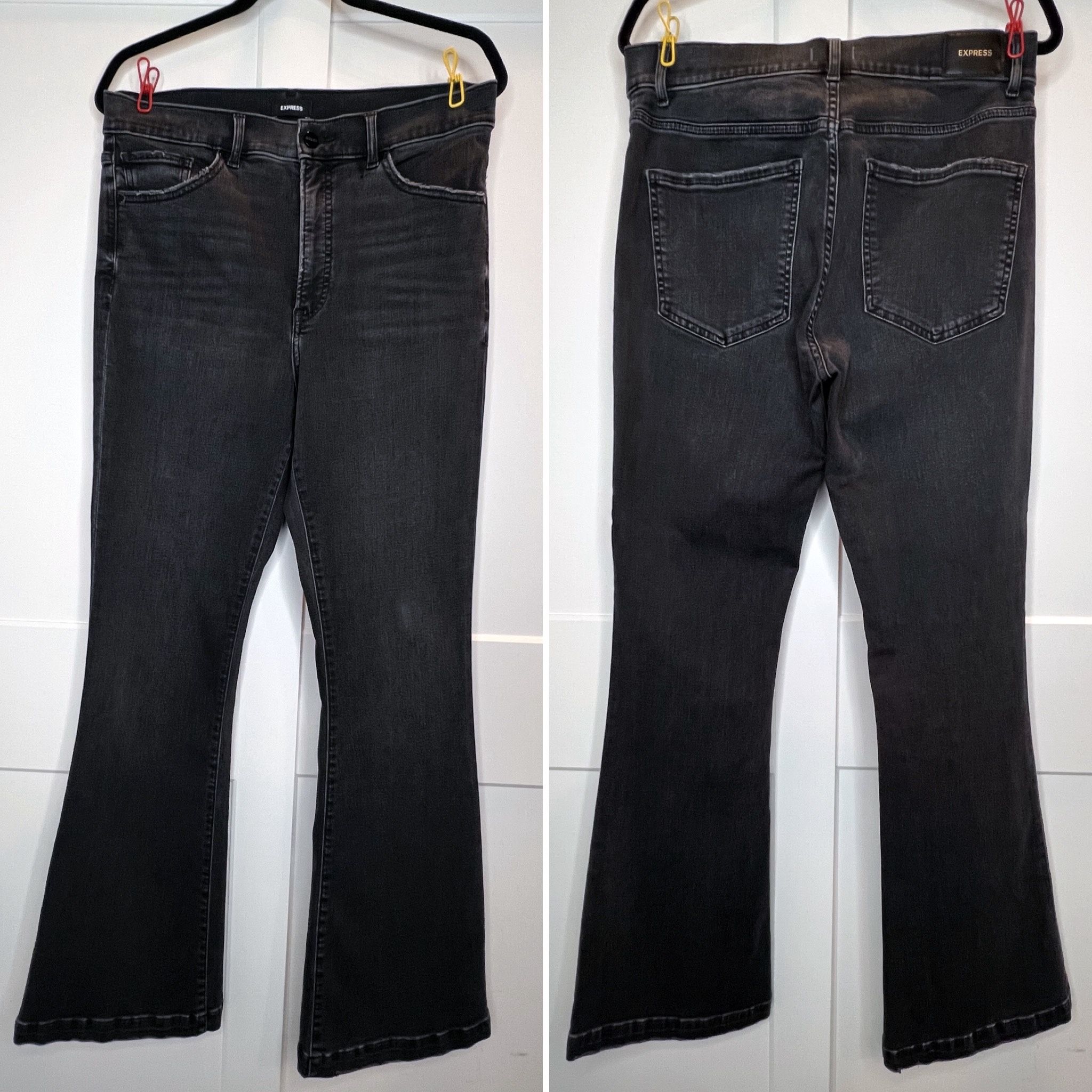 Express, Flare, High Rise, Stone Black, Size 12R Condition: Gently Used – Good Condition Price: $20 Payment: Cash or Zelle (No Change) Location: Echo Park, Los Angeles Meet-up: Public location Condition: New 🚫 No Trades 🚫 No Holds 🚫 No Deliveries 🚫 No Change Express High Rise Flare jeans in Stone Black, Size 12R. • High rise • Flare leg • Distressed detail around pockets • 71% Cotton / 18% Polyester / 9% Rayon / 2% Spandex • Comfortable stretch Stylish flare fit with a flattering high waist. Great everyday pair with subtle distressed accents. If the listing is up, it’s available.