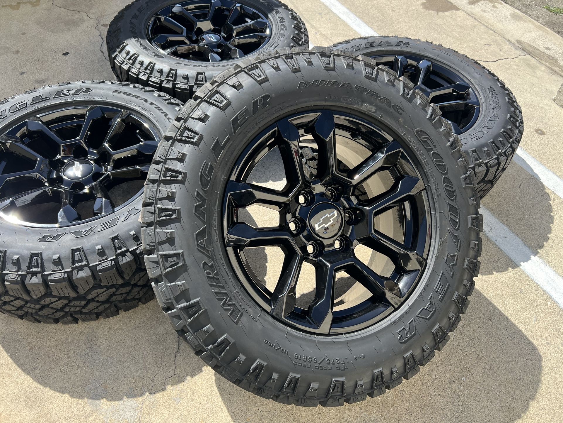 Rines y llantas nuevas para Chevy silverado 18” Originales de factoría OEM Llantas nuevas Goodyear wrangler Duratrac LT275/65/18 100% limpios nuevos gloss black powder coated $1650 Gente seria por favor gracias New Chevy silverado Rims and tires 18” Original Oem factory wheels New Goodyear wrangler Duratrac LT 275/65/18 tires 100% clean new gloss black powder coated $1650 Serious buyers only Thank you Chevy silverado rines Chevy tahoe wheels Chevy suburban rims Fits all Chevy GMC trucks Stock rims Stock wheels Fits Silverado Tahoe Z71 RST Avalanche Suburban GMC Sierra Yukon