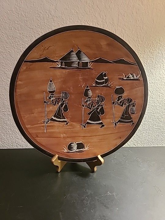 EXQUISITE Soapstone Folk Art 12" Round Platter Made in Kenya.