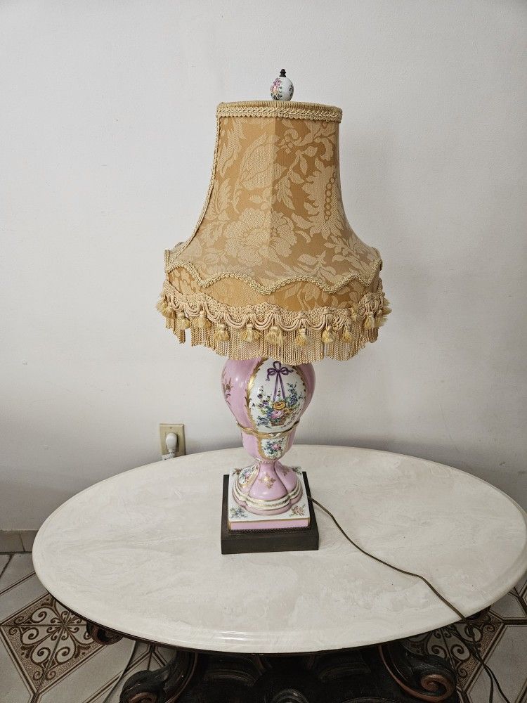 Large 32 inches height, 15 inches wide victorian style vintage lamp. Hand painted porcelain base. Very nice shade It's a quality solid heavy lamp weighs around 25 pounds. Great price. cash only. $100 Great price!. pickup sheepshead bay brooklyn