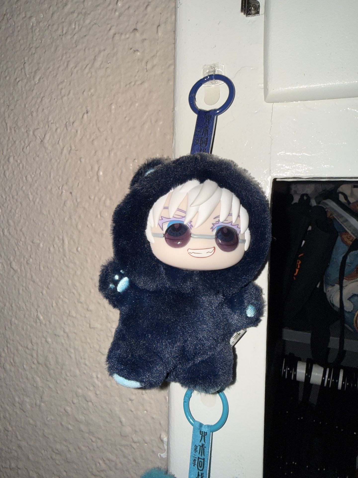 Selling an official EAKI Cat Ear Plush Series keychain featuring Satoru Gojo from Jujutsu Kaisen. Super cute design with fuzzy blue material, detailed faceplate, and attached keychain loops. Perfect for fans, collectors, or as a fun accessory for bags and keys. • Character: Satoru Gojo • Series: EAKI Cat Ear Plush Keychain • Excellent condition • Includes original tags • Smoke‑free home Pickup only ---