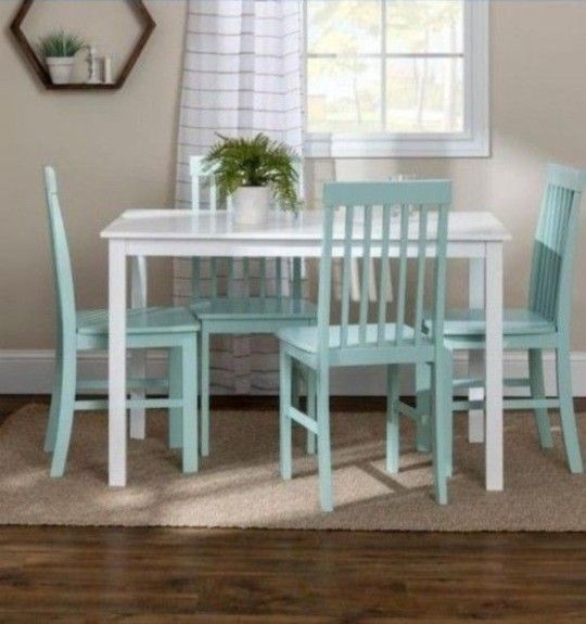Modern White and Green 5 Piece Dining Set (Brand New In A Box)