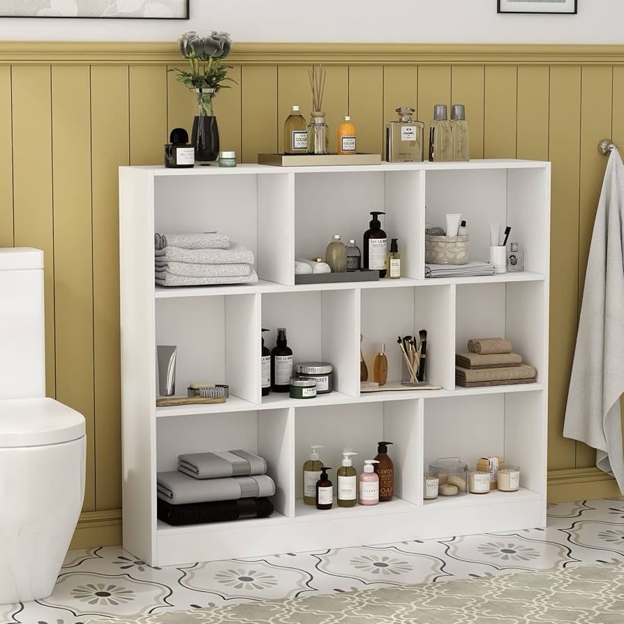 O766 Bookcase 10 Cube Bookshelves, 3-Tier Wood Open Storage Organizer for Living Room Bedroom Home Office, White Top highlights Material Wood Mounting Type Floor Mount Room Type Bathroom Shelf Type Tiered Shelf Number of Shelves 3 Special Feature Sturdy Saving Space】Small Bookshelf for small spaces. This is a optimal choice for home lovers to reduce clutter without taking up a lot of space and create neat, beautiful and comfortable living conditions for your home. With different sizes of Cubes, this Bookcase can meet your different storage needs. 【Various Uses】With its timeless elegant design, this Cube Storage Organizer meet both aesthetic and functional storage requirements. Moreover, it can be used not only as a bookshelf, but also as a kitchen cabinet, filing cabinet and general storage cabinet that can be placed anywhere in the room. 【Quality MDF Board】 Instead of cheap and vulnerable particleboard, we stick to a high-quality MDF board that makes our bookcase more sturdy and durable. No wobbling, no collapsing. 【Easy Cleaning & Assembly】Thanks to the smooth, scratch-resistant and waterproof surface of this Small Bookshelf, you can simply wipe away stains with a damp cloth. Besides, this bookcase is easy to assemble according to the detailed instructions. 1031308