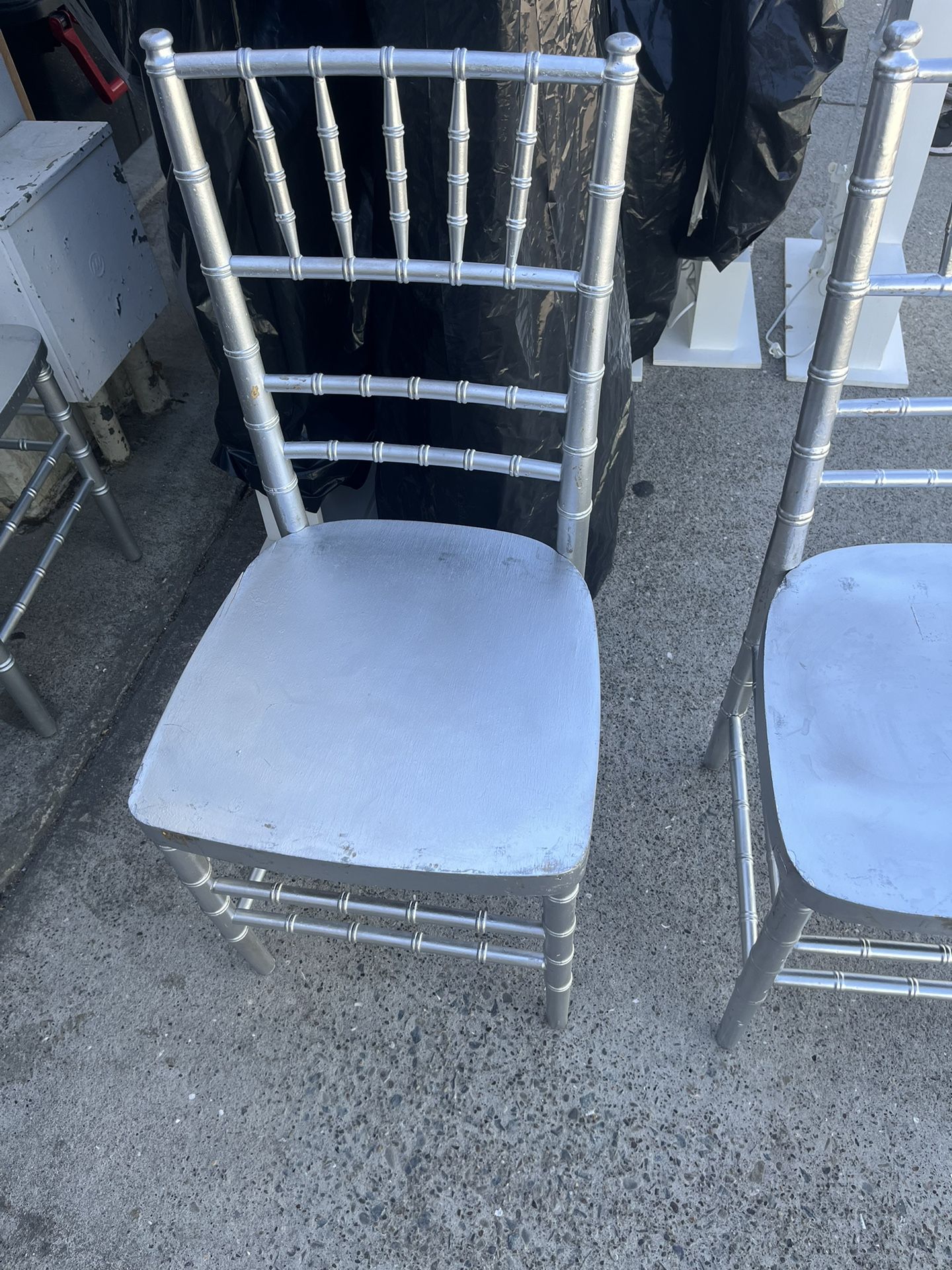 Tengo 21 sillas a $15 sin cushion Son usadas , son de madera y estan pintadas yo las pinto cuando se rallan