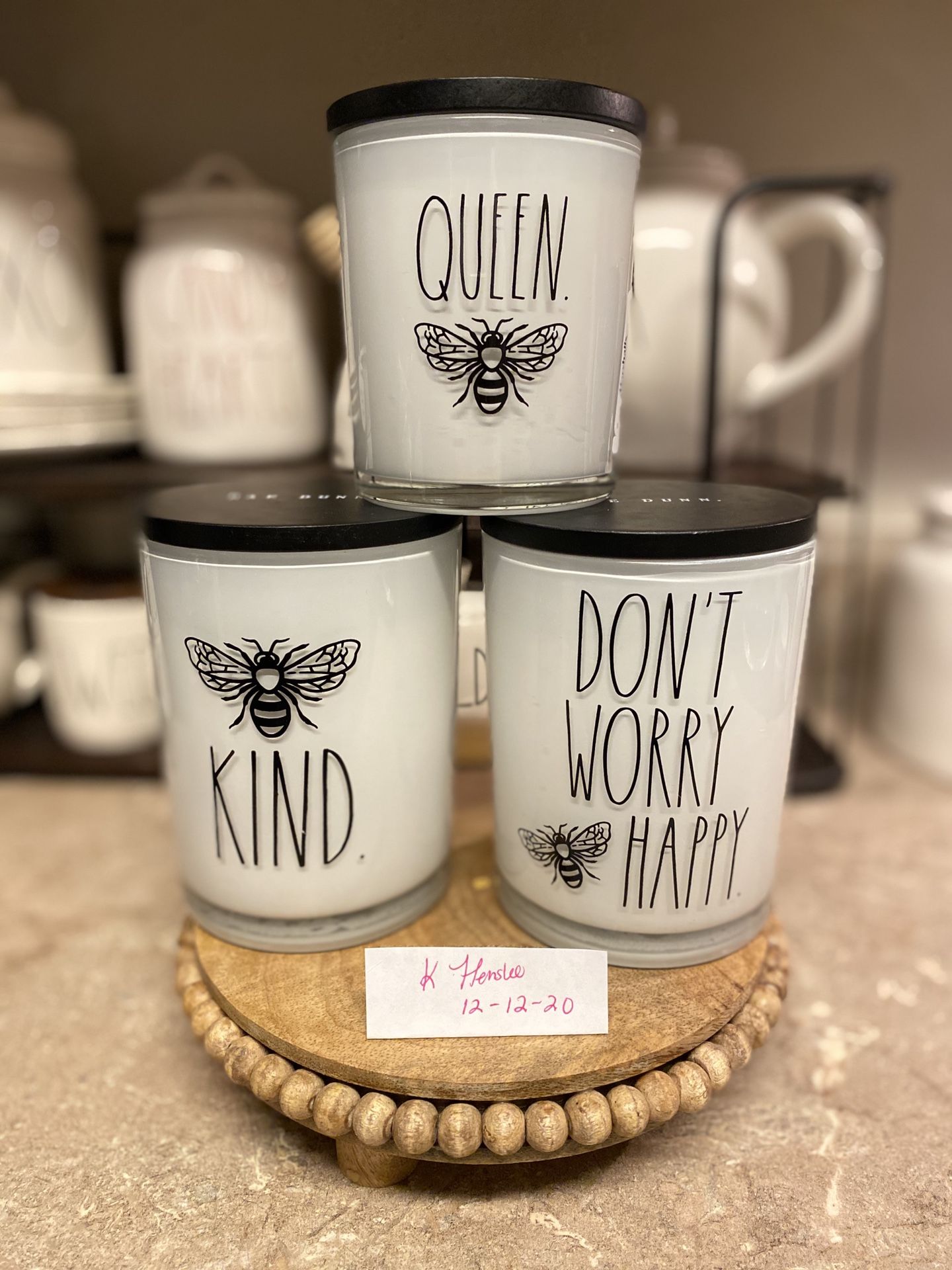 Very sought out 16oz Cannabis Rose scent! Queen bee- Fresh Flower Shop scent10.5oz ($20 if sold separately) Bee kind- Tea&Honey scent 16oz ($24 if sold separately) Don’t worry be happy- Cannabis Rose 16oz ($30 if sold separately)