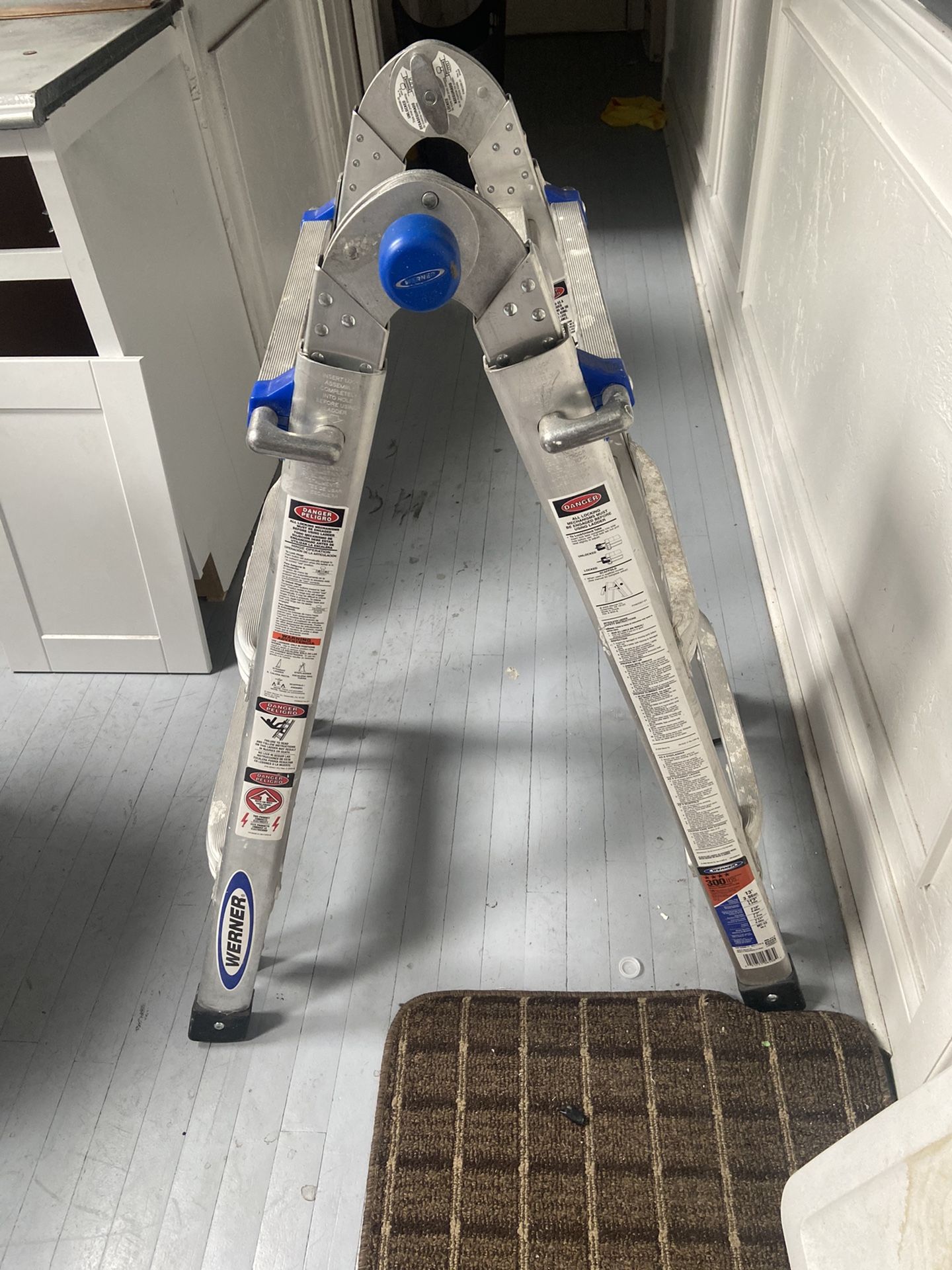 this is personally my ladder i got about 4 of the small ones and like three bigger ones brand new still got the rapping on them asking 250 for the small ones and 300 for the bigger ones each one really useful it’s really easy to move around and to adjust the height
