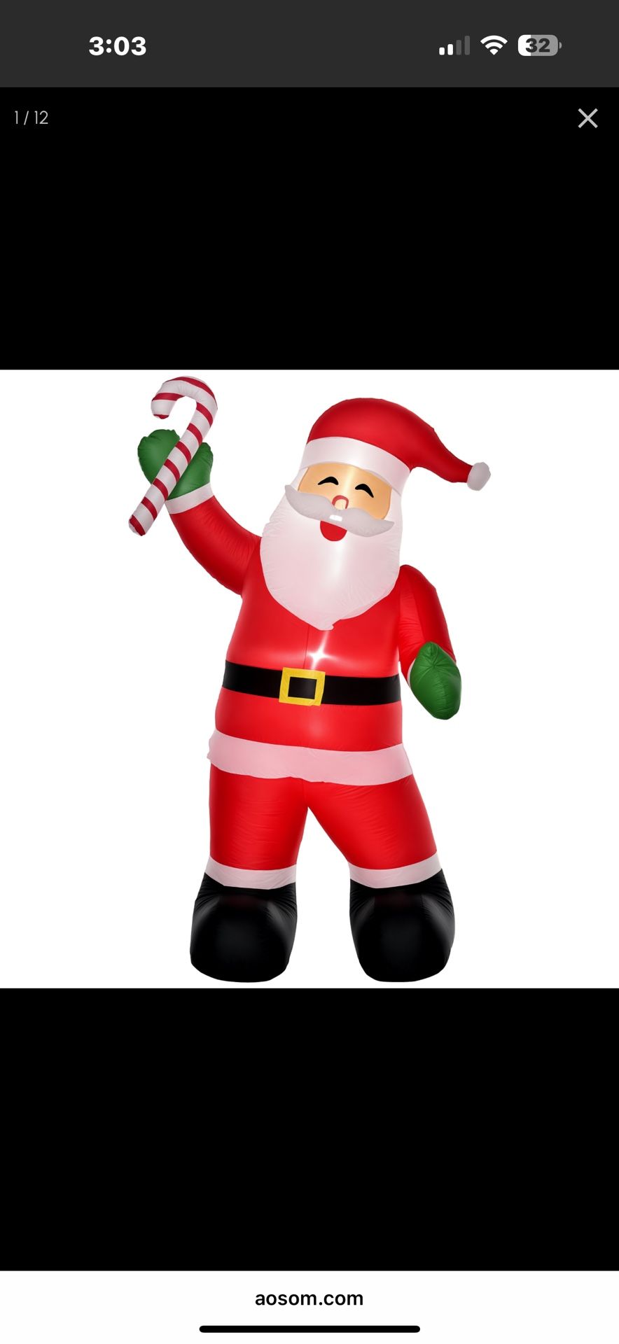 New in box HOMCOM 8' Christmas Inflatable Santa Claus with Candy Cane, Outdoor Blow-Up Yard Decoration with LED Lights Display 844-244