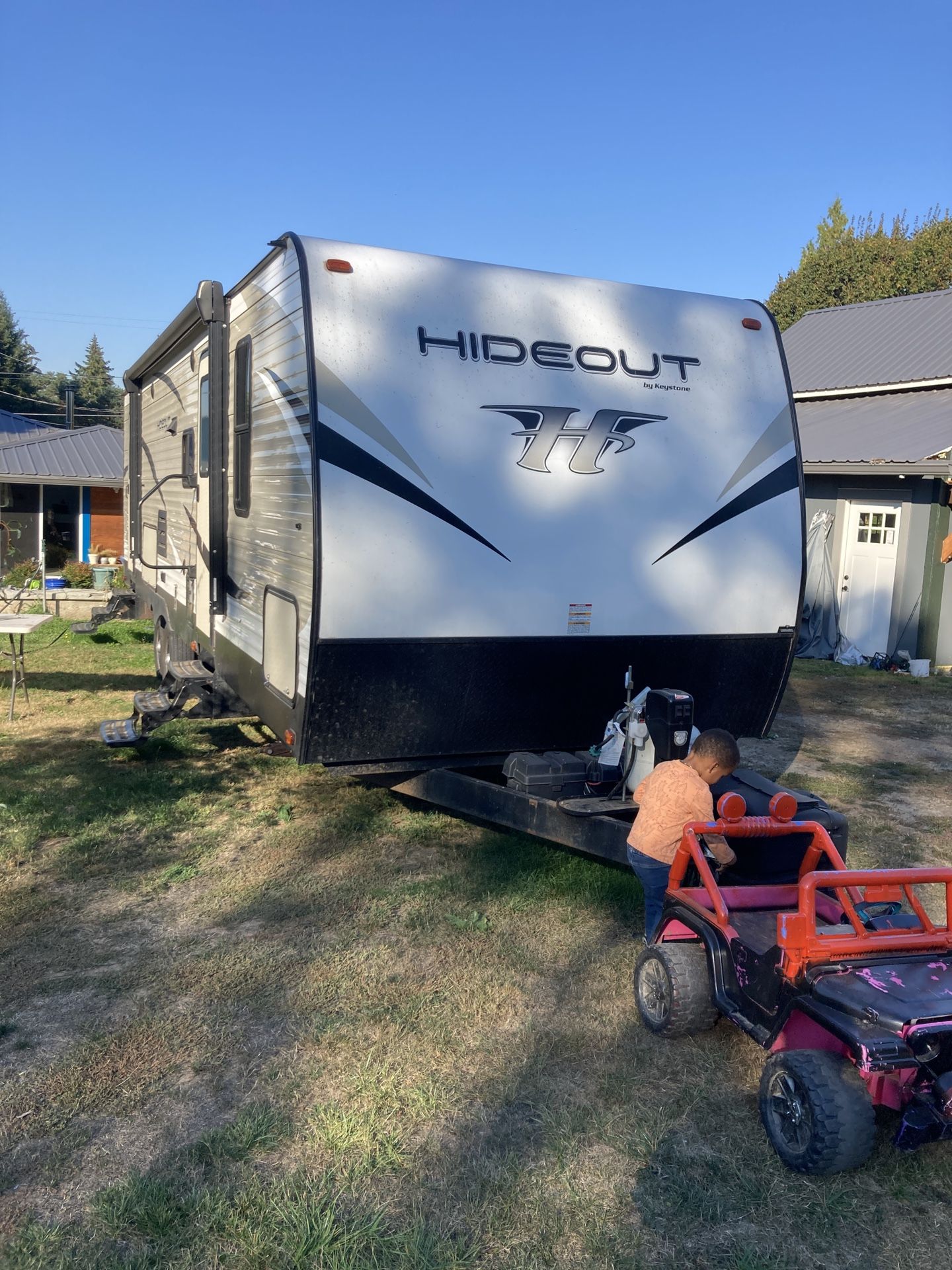 Camper trailer; Tow behind Winter package Modern layout with sleeping arrangement: - queen primary suite - bunk bed - kitchen table turns into extra large twin Bathroom with exterior and interior entrance About 32 feet bumper to ball/tow point Excellent tires, brakes, etc. nice tv and antenna Great working appliances Available upon appointment to view (scheduling around work schedules, etc) As of march 2023 New batteries and maintenances and updates. Everything is golden!