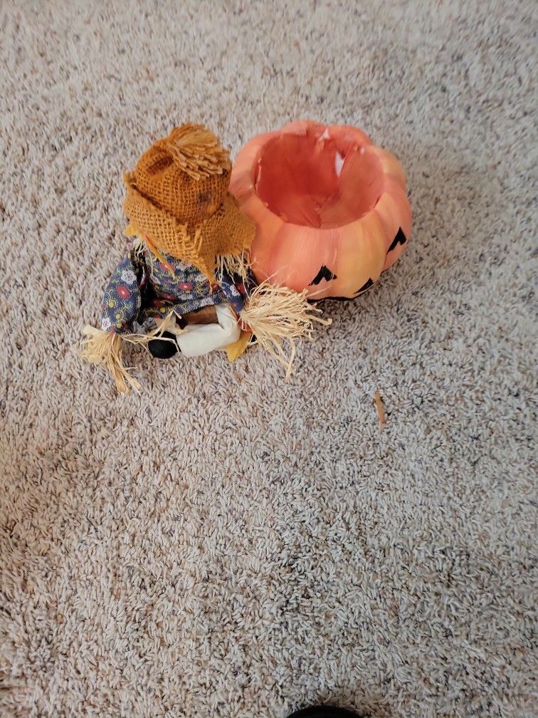 Small table fall decorations. Can put candy in Pumpkin basket or flowers.