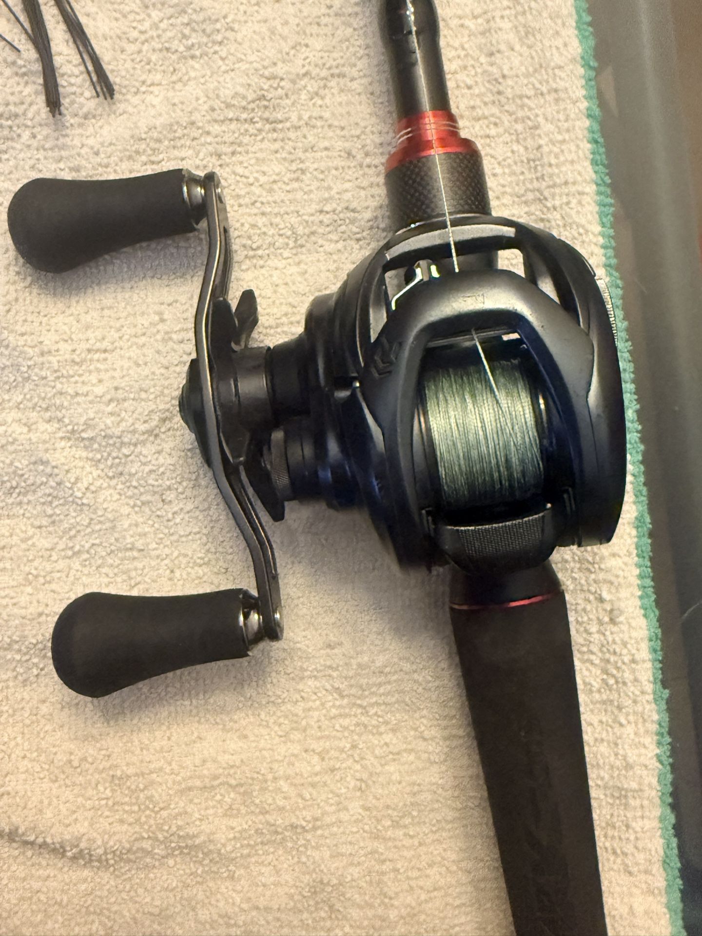 Baitcasting rod + reel combo in excellent condition. Ark Invoker Pro 7’6” Fast Extra Heavy rod paired with Daiwa Tatula Elite 8:1 reel. Ready to fish. Rod tip repaired.